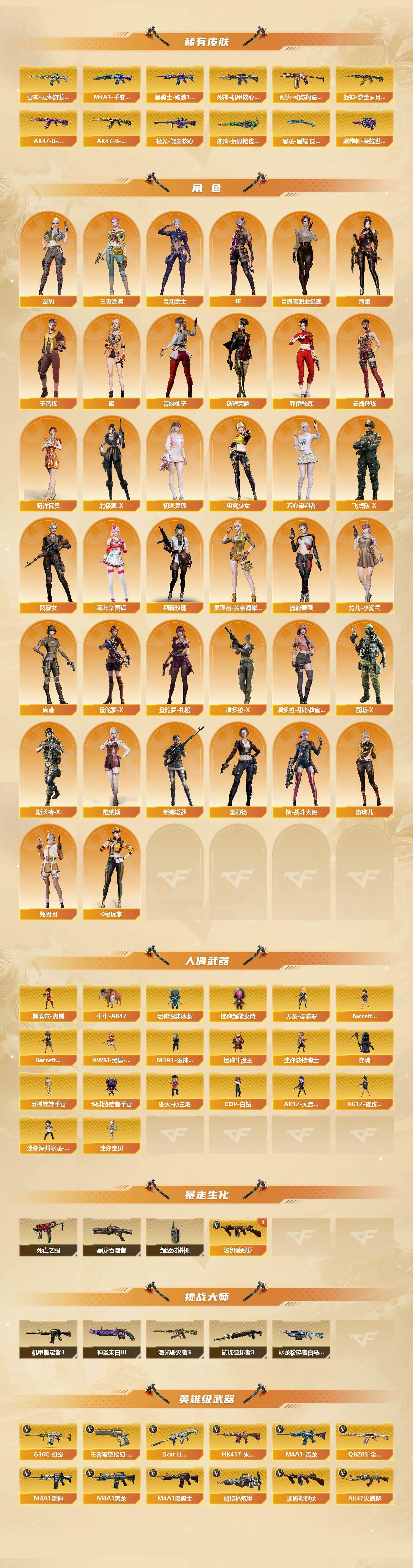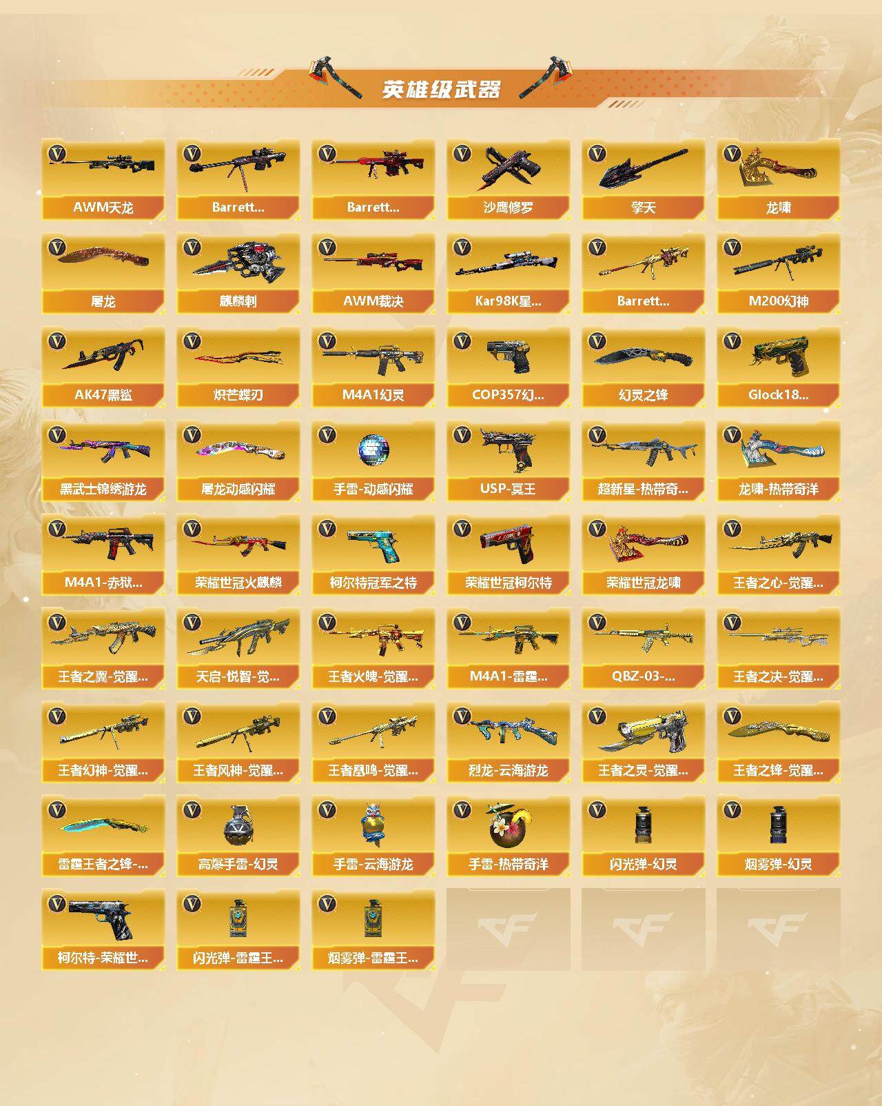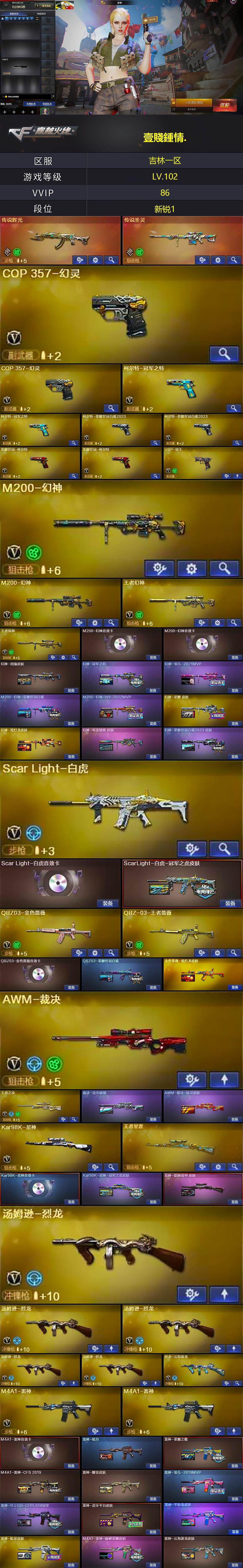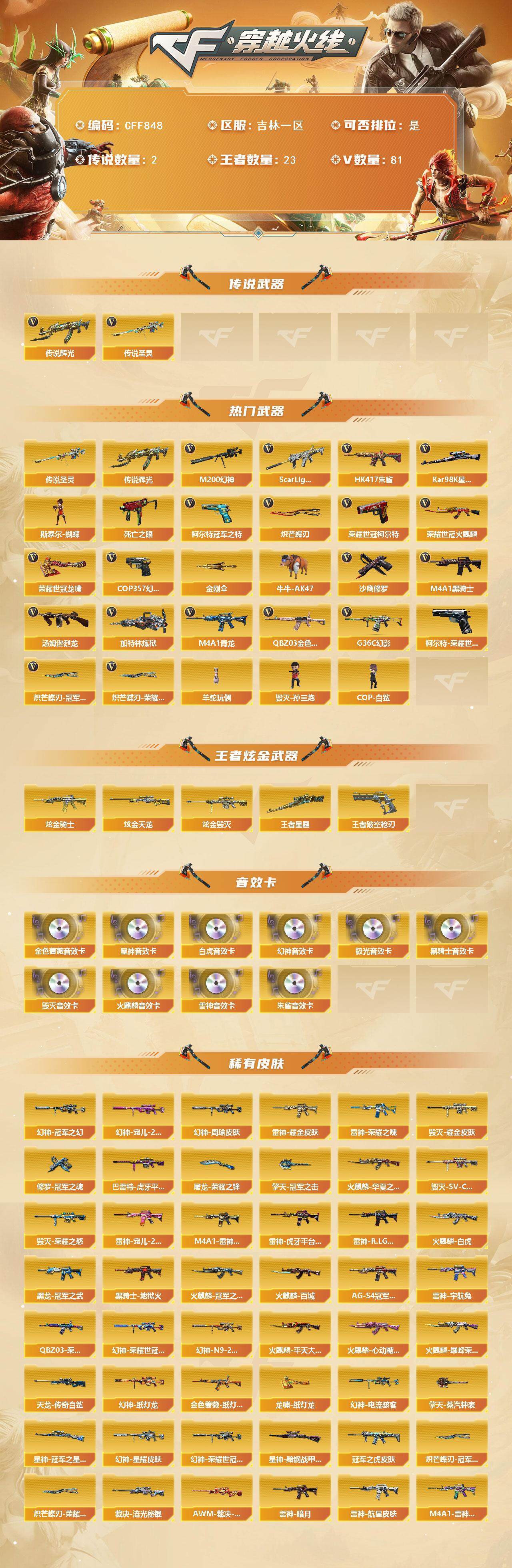 【cff848】78v/102级/荣耀元首/2传说/23王者/3炫金/3英雄/传说辉光/传说圣灵/g36c-幻影/q03-金色蔷薇/scar light-白虎/hk417-朱雀/m4a1-青龙/m200-幻神/柯尔特-荣耀世冠白鲨2023/死亡之眼/火麒麟-荣耀世冠/柯尔特-冠军之特/柯尔特-荣耀世冠/kar98k-星神/牛牛-ak47/m4a1-黑骑士/汤姆逊-烈龙/加特林-炼狱/斯泰尔