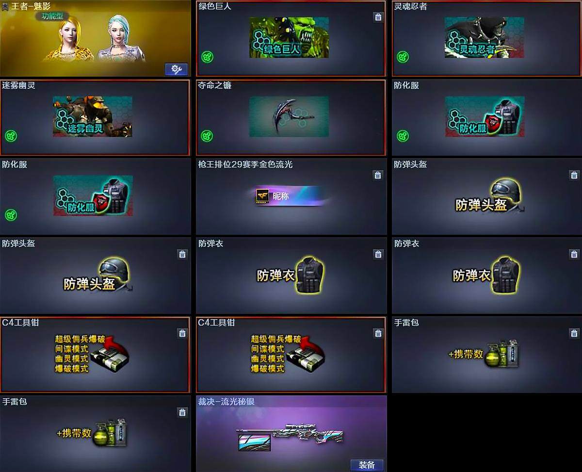 【cff853】12v/33级/尉官/2王者/m200-幻神/m200-竞技荣光/王者风神/裁决-流光秘银/王者-魅影/awm-裁决/柯尔特-竞技荣光/屠龙/擎天-竞技荣光/高爆手蕾-竞技荣光/闪光丹-竞技荣光/盐雾蛋-竞技荣光/绿色巨人/灵魂忍者/迷雾幽灵/夺命之镰/防化服/呛王排位29赛季金色流光/防弹头盔/防弹衣/c4工具钳/手蕾包