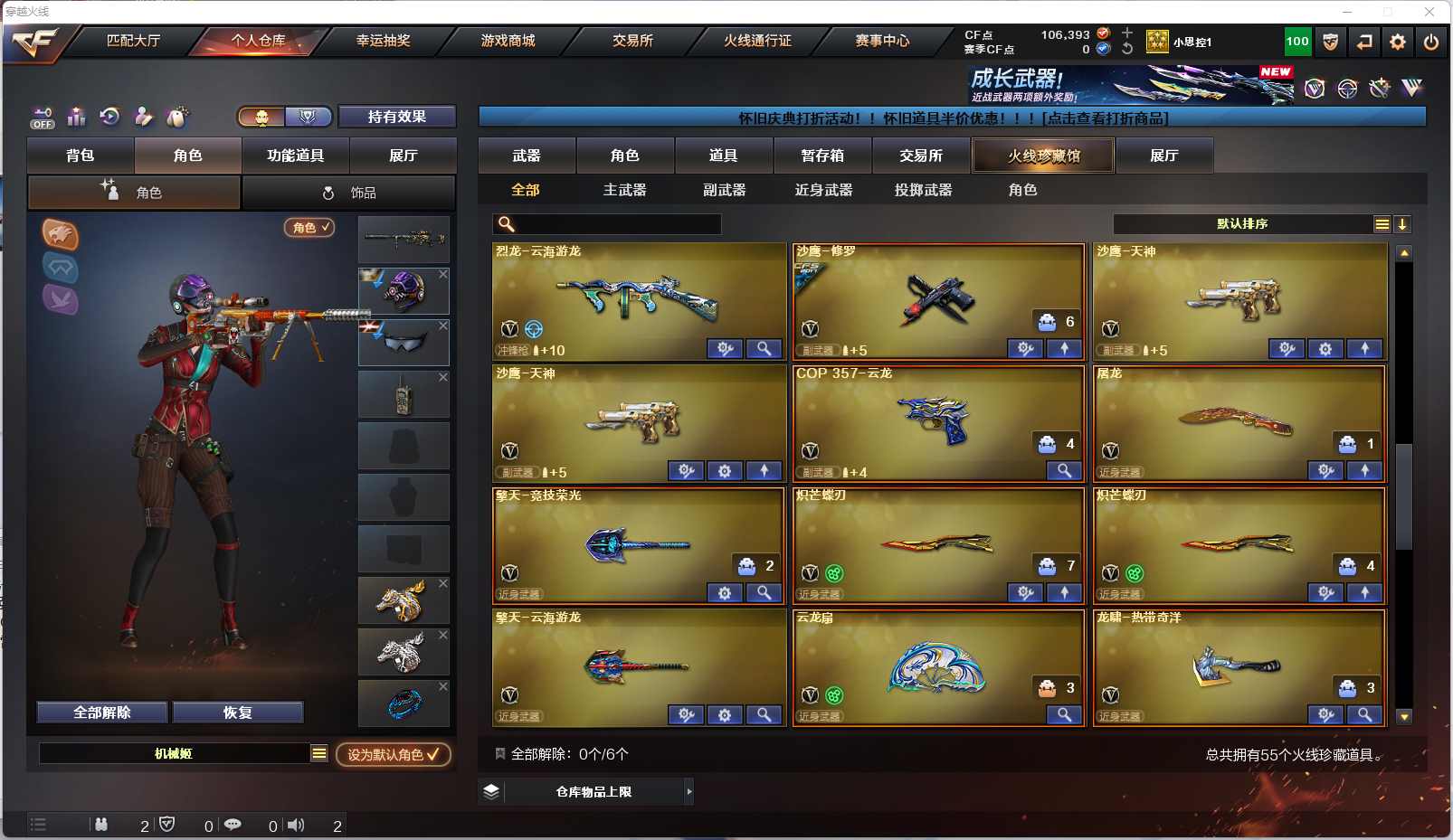 017-w4962-河北一区-(可二次-VIP5)-55V-【传说灵眸】-【幻神-幻神宠儿-幻神N9-黄忠】-【星神冠军之星-无星神】-【王者星神-炽芒蝶刃x2-COP云龙】-【华-机械姬-潘多拉X】-【裁决音效卡-无裁决】-白虎(CFPLS23冠军)-QBZ金色蔷薇(金色蔷薇拼搏-传奇宠儿-吕布)-雷神(CFPLS18冠军)-黑骑士(战神马超)-AN94超新星-M4青龙-QBZ天罚-无影-M4猎神-荣耀世冠火麒麟-荣耀世冠雷神-极光-王者之决-沙鹰修罗-沙鹰天神-屠龙-擎天竞技荣光-云龙扇-荣耀世冠龙啸-幻灵手雷套-云龙手雷套