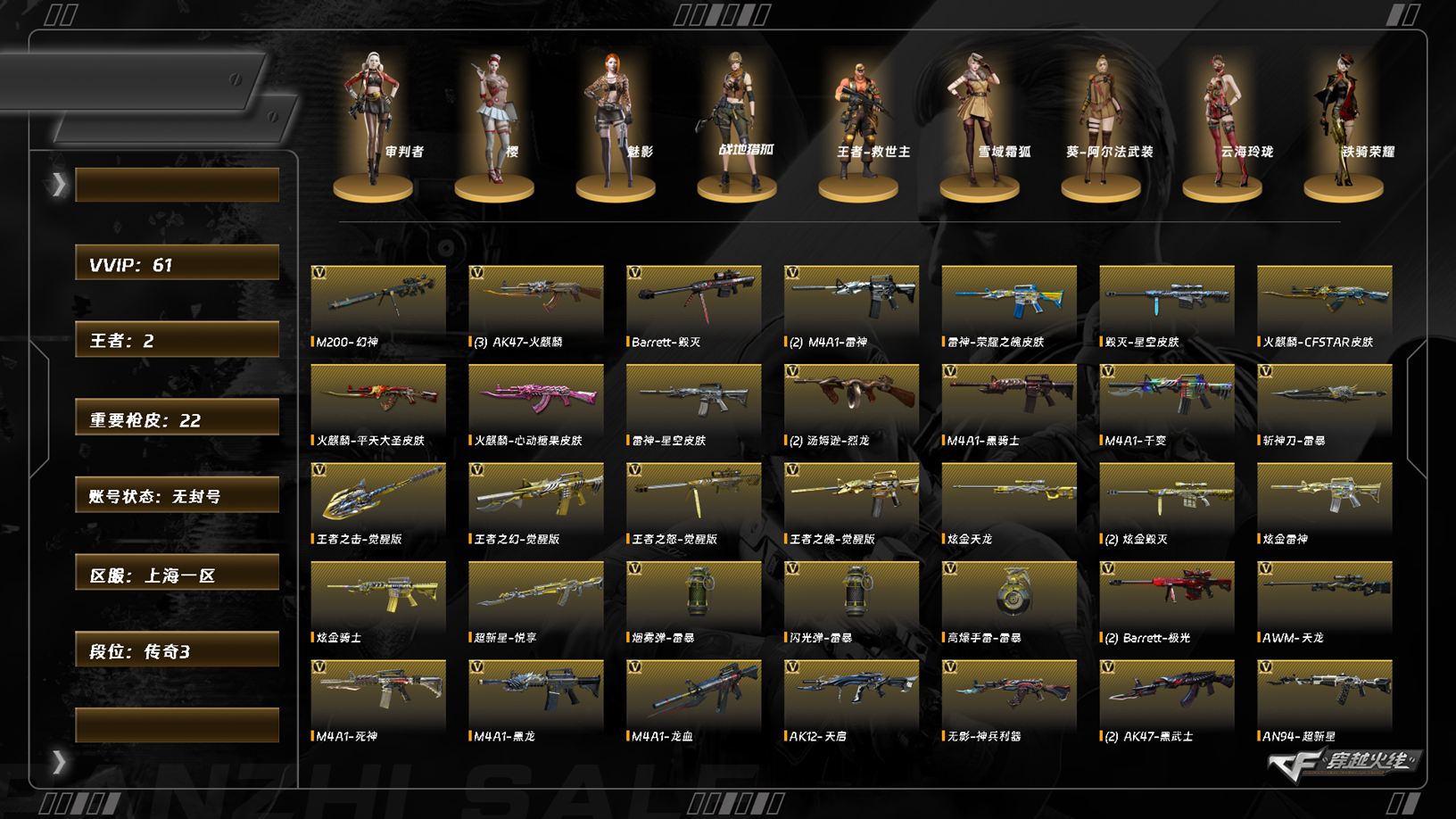 7427/东部/上海一区/可排位/59v/幻神/5修罗/火麒麟/雷神/黑骑士/死神/黑武士/天启/超新星/龙血/无影神兵利器/死神雪域霜狐/机械迷城穹宇/【角色】/审判者/樱/魅影/零纪元/战地猎狐/葵阿尔法武装/王者救世主/雪域霜狐/云海玲珑/【音效卡/死神雪域霜狐怀旧音效卡/炼狱百战金芒庆典