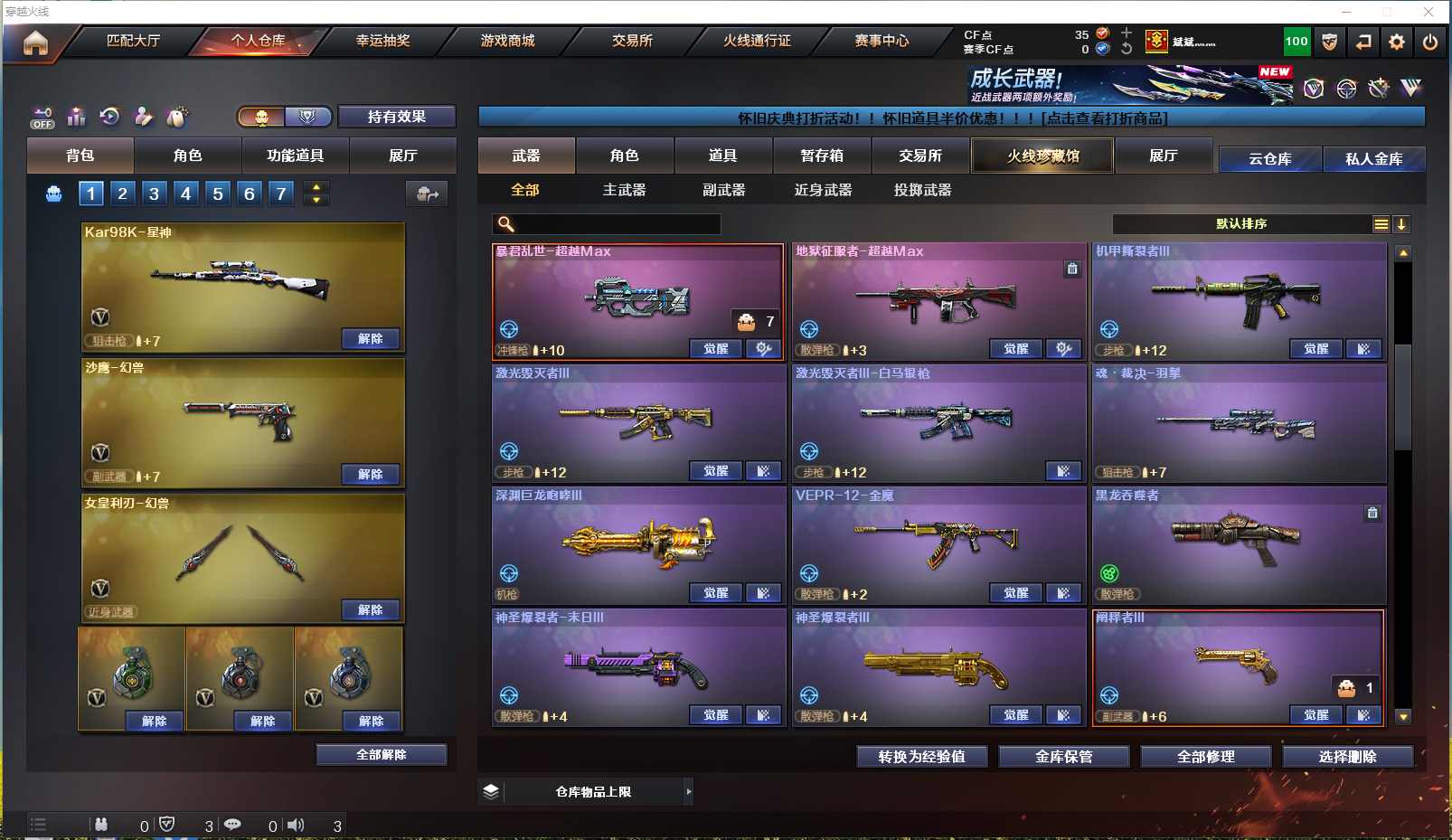 江西一区 有二次 可排位 阿飞 114v 【98K-星神沙鹰-幻兽女皇利刃-幻兽幻兽手雷套】【QBZ-金色蔷薇4】【Scar白虎】【火麒麟火麒麟-CFSTAR】【黑龙黑龙-能量核心】【雷神雷神-暗月雷神音效卡】【黑骑士黑骑士-暗月黑骑士音效卡】【毁灭毁灭-星空】【天龙天龙-能量核心】【盘龙3炼狱3烈龙斯太尔-蝴蝶】【修罗修罗-CFSTAR】【雷暴手雷套】死神 黑武士 天启 龙血 玫瑰精灵 裁决 天神 屠龙 龙啸 擎天 麒麟刺 【角色】葵 零 审判者 瞳 樱 炫 如赛季更新等不可抗拒因素发生变化、时限道具不保证所剩时间,阿飞账号安全无忧.置换可享更多优惠.