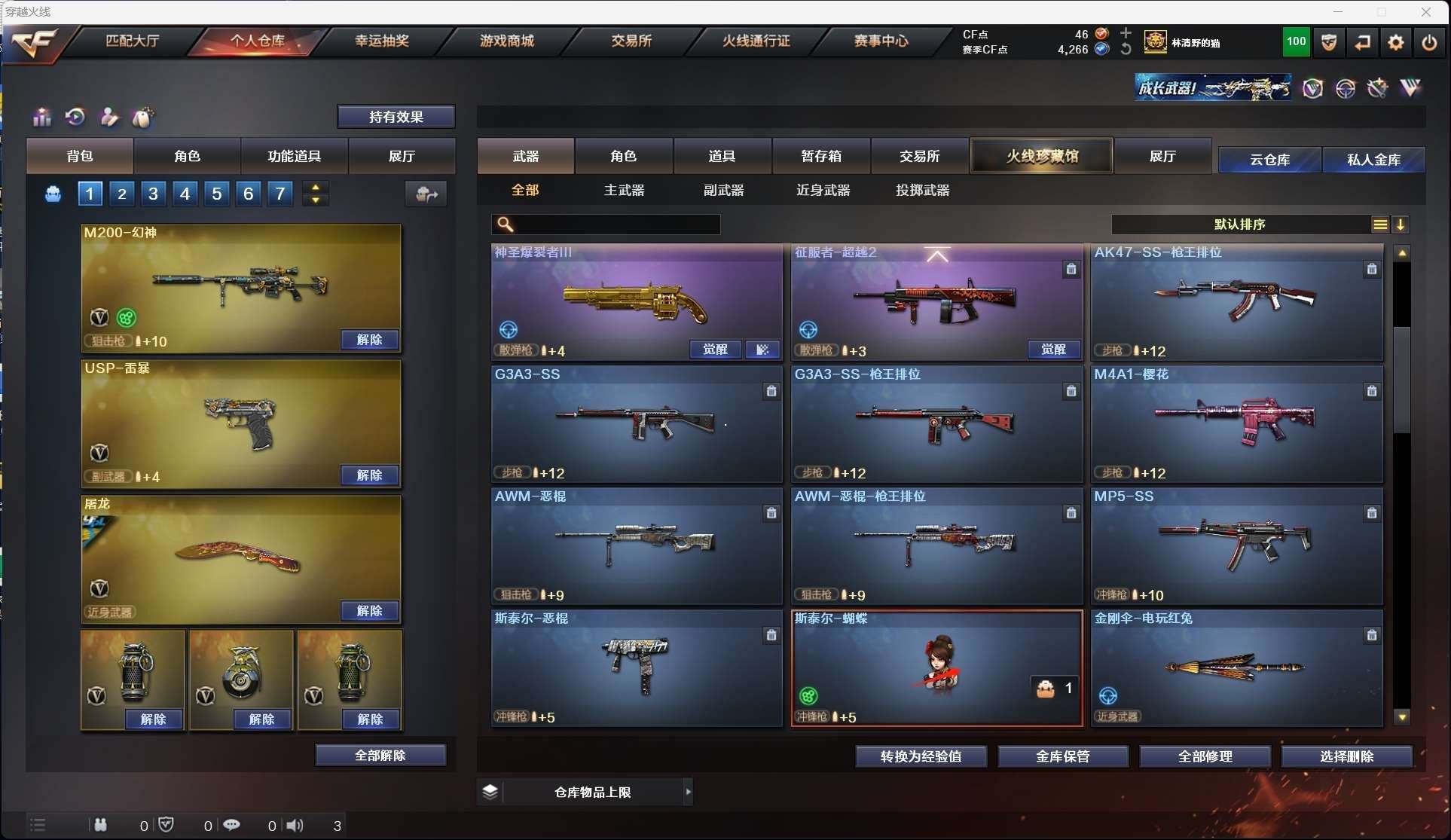 湖南一区52v【m200幻神幻神音效卡usp雷暴】【qbz03王者蔷薇】【6烈龙1盘龙1炼狱斯泰尔蝴蝶】【雷暴套装】【雷神雷神音效卡荣耀之魄皮肤】【毁灭毁灭音效卡荣耀之怒皮肤】【王者之戮 王者之势】【烈火 天启 战神 火麒麟 黑骑士 黑骑士海王 暗月传说 白虎电玩 裁决 aa12雷霆】——【热门武器/小人呛】【火麒麟灵狐 斯泰尔蝴蝶】——【usp雷暴 修罗3】——【屠龙 战神刀雷暴】——【雷暴投掷武器套装4】——【角色】【电竞教官云悠悠 魅影】