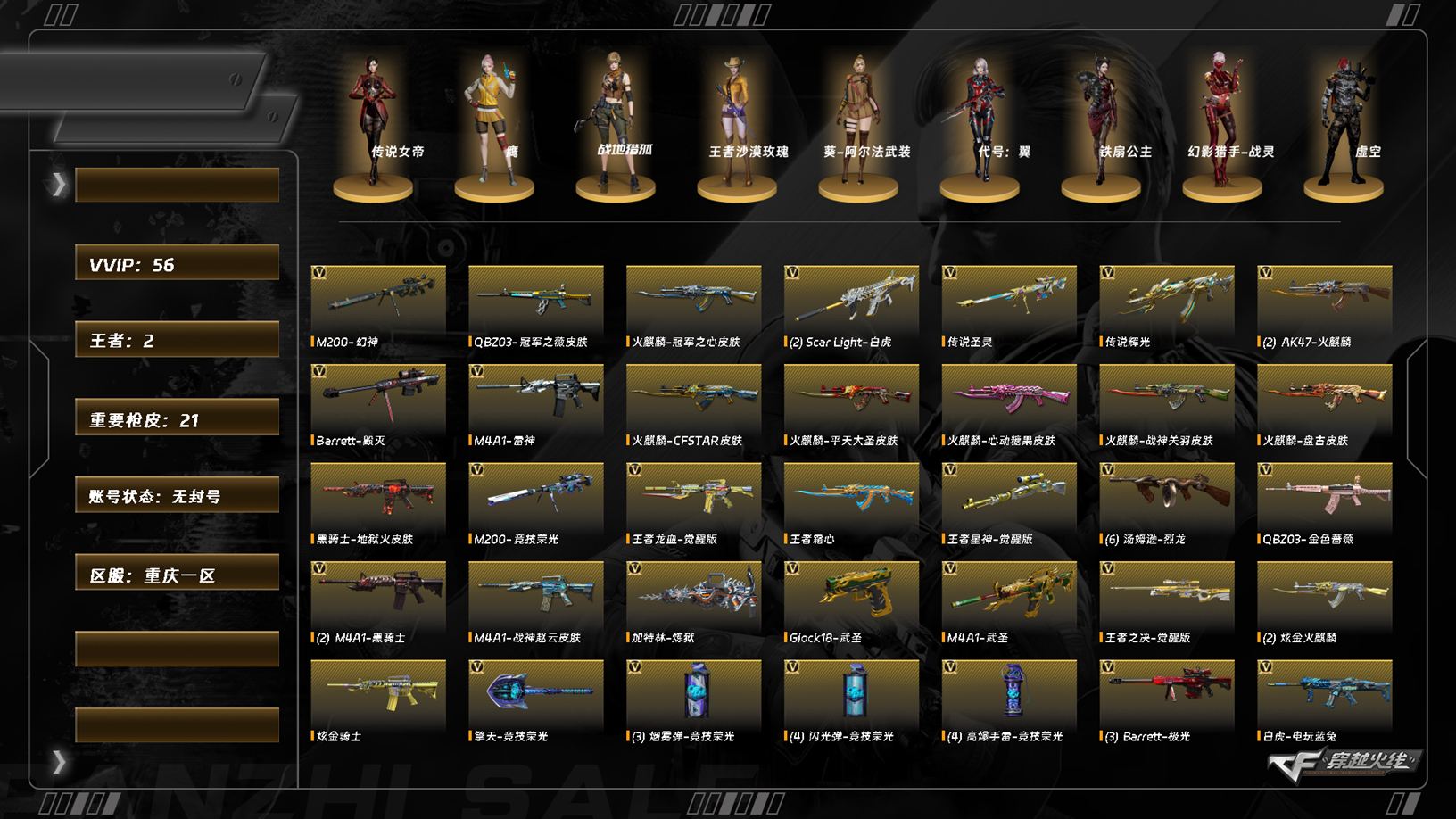 7410/西部/重庆一区/可排位/55v/3传说/【四防传说角色/传说女帝/】/【角色】/传说辉光/传说圣灵/幻神/6烈龙/王者星神/觉醒版/王者龙血/觉醒版/200竞技荣光/白虎/2/q金色蔷薇/q冠军之薇/白虎电玩蓝兔/【四防角色/王者沙漠玫瑰/】/【角色】/鹰/零纪元/战地猎