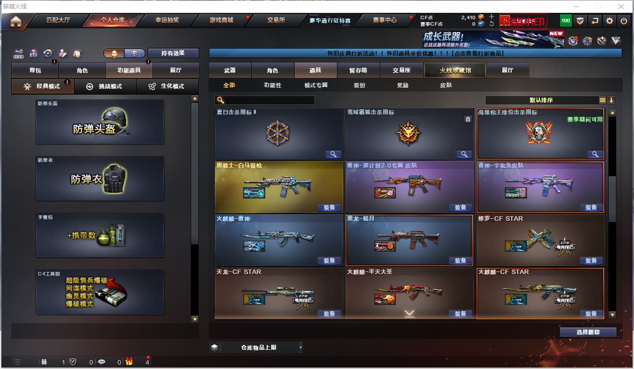2285639-f西部/四川1区/32v/m200幻神/6烈 蝴蝶/q金色蔷薇/千变/火麒麟/黑龙/雷神 原计划皮 宇航兔皮/黑骑士 音效卡 白马银呛/无影/死神/毁灭3/炼狱/修罗/屠龙/麒麟刺/王者之峰/可排