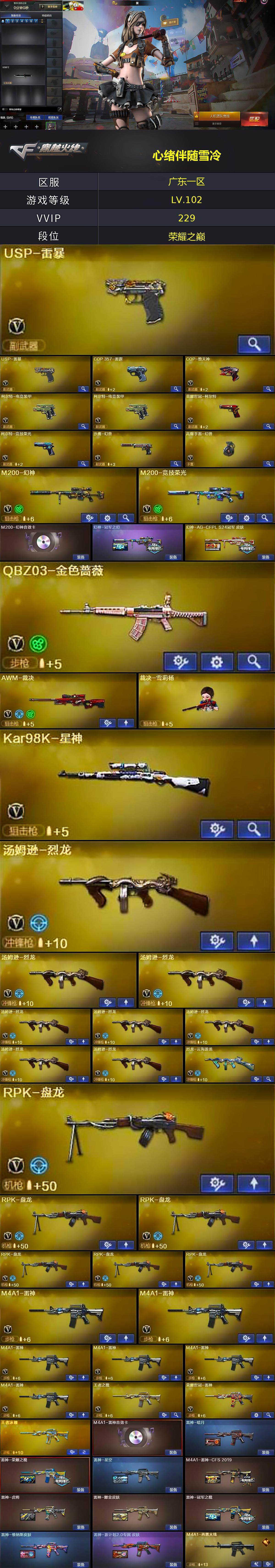 广东一区-227v-21王者-5炫金 【热门武器】:q03-金色蔷薇,m200-幻神,修罗-古蛇迷踪,m200-竞技荣光,死亡之眼,荣耀世冠-火麒麟,荣耀世冠-雷神,荣耀世冠-柯尔特,kar98k-星神,金色小号,cat-刀锋,m4a1-黑骑士2,汤姆逊-烈龙8,rpk-盘龙6,加特林-炼狱,斯泰尔-蝴蝶,裁决-雪莉杨,usp-雷暴2,cop-堕天神,cop 357-雷霆王者,沙鹰