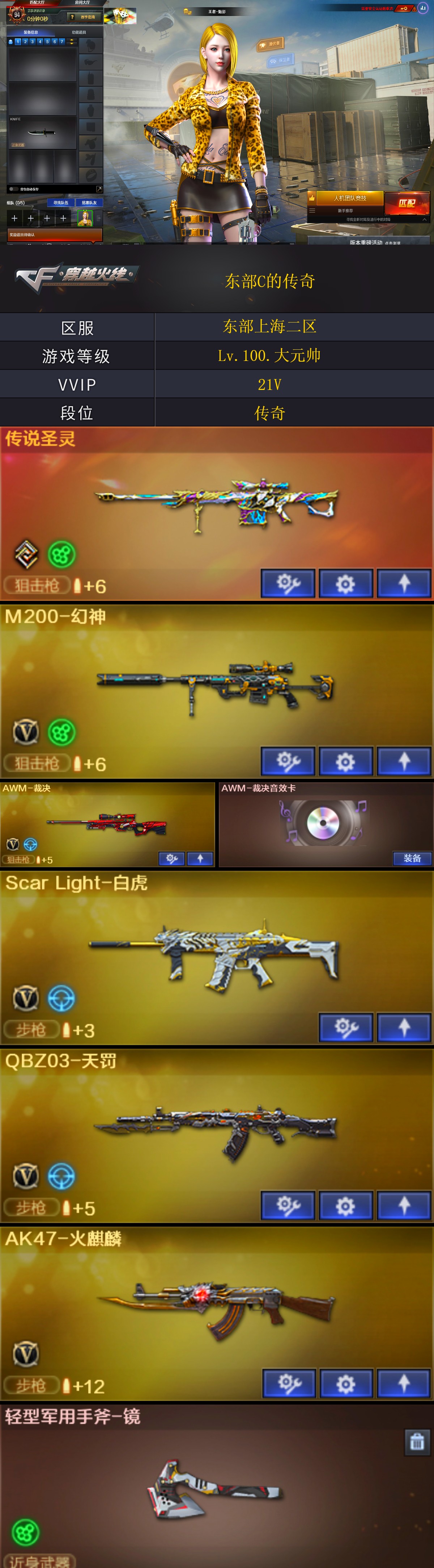 【★找回包赔★东部168】:东部上海二区-21v-可二次实名-【lv.100.大元帅】-【段位:传奇】传说圣灵/m200-幻神/awm-裁决/scarlight-白虎/q03-天罚/awm-裁决音效卡(截图展示段位不代表实际段位,如赛季更新等不可抗拒因素发生变化,其余道具看截图或咨询客服)