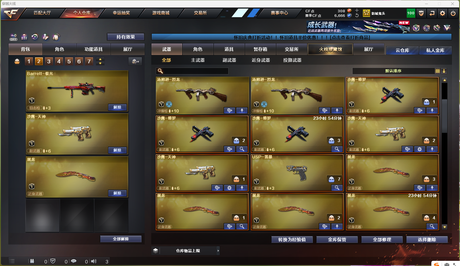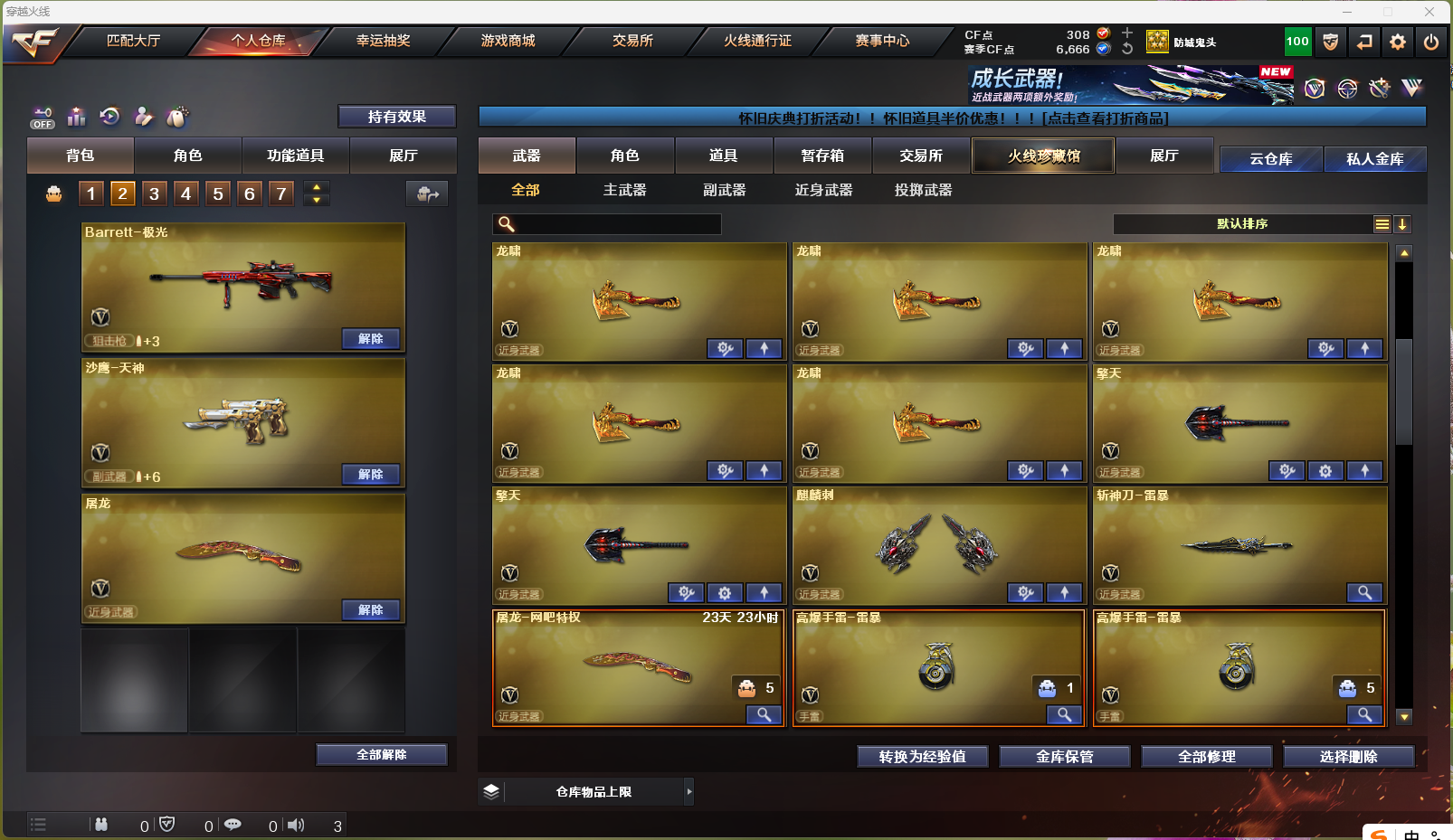 【南部战区 广西一区 50v 6烈龙 】 角色 葵 零 王者之影 王者之魄 ak47-火麒麟 ak47-黑鲨 m4a1-黑龙 ak47-雷暴 scarlight-白虎 源-雷神iii m4a1-玫瑰精灵 rpk-盘龙 汤姆逊-烈龙 沙鹰-修罗 沙鹰-天神 usp-雷暴 屠龙 龙啸 擎天 麒麟刺 斩神刀-雷暴 高爆手蕾-雷暴 盐雾蛋-雷暴 闪光丹-雷暴