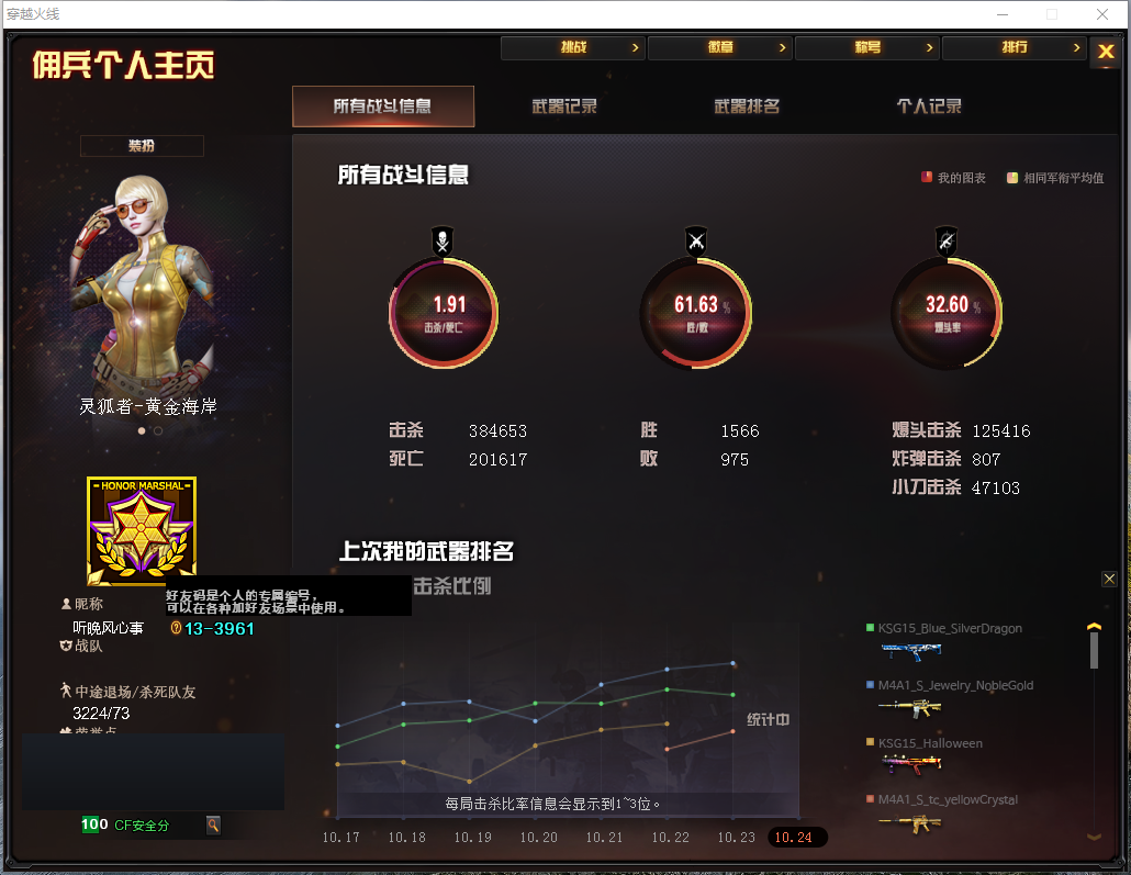 【等级】102【区服】河北一区 幻神 火麒麟巅峰荣耀【vip】9【段位】荣耀之巅【kd】1.9【cf点】0【英雄角色】3【英雄武器】74【王者级武器】王者之幻-觉醒版 王者之势-觉醒版 王者之怒 炼狱-悦蓝【炫金级武器】炫金修罗 炫金武士 炫金毁灭【英雄级角色】葵 樱 炫【英雄级武器】麒麟刺-堕天神 盐雾蛋-堕天神 高爆手蕾-堕天神 闪光丹-堕天神 aa-12-雷霆 高爆手蕾-