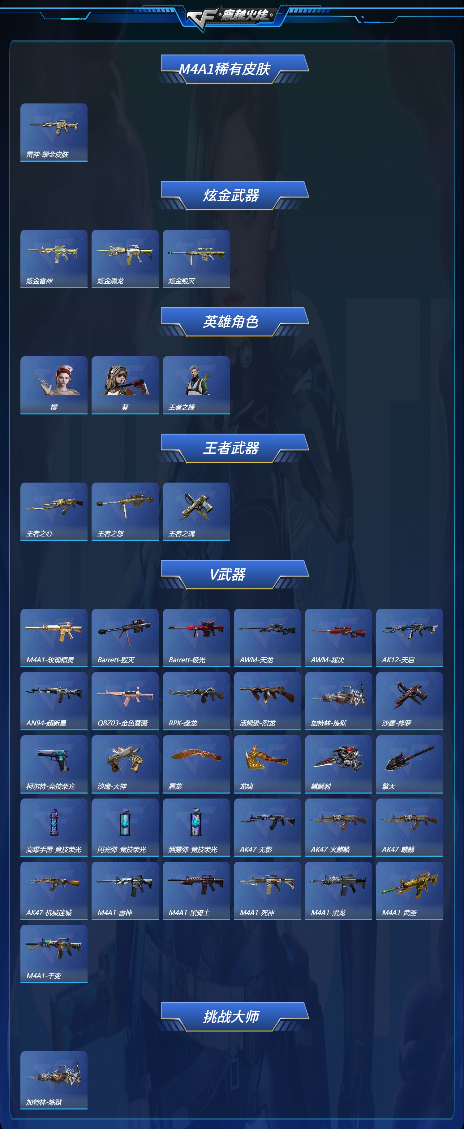 【北部河北一区 荣耀呛王】【60v5王者3炫金】【6烈龙4盘2炼狱】【王者武器】 王者之心 王者之怒 王者之魂 高爆手蕾-雷霆王者 【炫金武器】 炫金黑龙 炫金雷神 炫金毁灭 【英雄武器】 m4a1-千变 ak47-火麒麟 ak47-麒麟 m4a1-黑龙 m4a1-雷神 m4a1-黑骑士 ak47-无影 m4a1-死神 ak12-天启 an94-超新星 m4a1-武圣 ak47