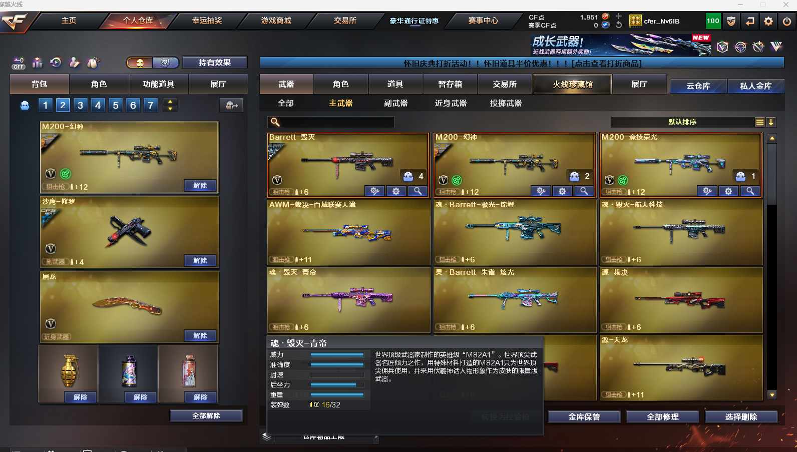 【陕西一区 王者级3 v17 m200-幻神 m200-竞技荣光 幻神黄忠】【等级】94【区服】陕西一区【英雄角色】0【英雄武器】17【王者级武器】王者之烈-觉醒版 悦蓝-惊涛骇浪-觉醒版【英雄级武器】龙啸-烈火龙威 无影-神兵利器 ak47-火麒麟 m4a1-黑骑士 m200-幻神 擎天-竞技荣光 m200-竞技荣光 闪光丹-竞技荣光 盐雾蛋-竞技荣光 高爆手蕾-竞技荣光 擎