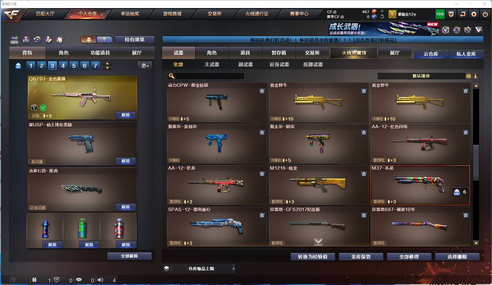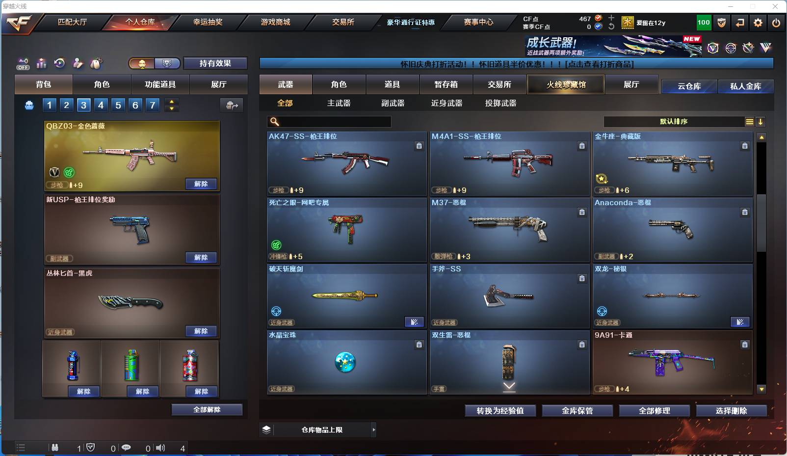 006fs:k3444河北一可二次 lv.81段位新锐1,17v,0传说,0王者,0炫金,467cf点,游戏年龄6年;【重要角色3】:乔伊教练/蜀雪/空;【武器皮肤9】:毁灭-黑大圣/m4a1-千变-孔明2/火麒麟-cfstar/火麒麟-心动糖果/战神-流金岁月/战神-紫绶金章/ak47-黎明设计图/修罗-cfstar;【英雄武器17】:barrett-极光/barrett-毁灭/q03-金色蔷薇/m4a1-黑骑士/黑武士-锦绣游龙/无影-神兵利器/ak47-火麒麟/ak-47-猩红传说2/ak47-b-战士/ak47-无影/沙鹰-修罗/斩神刀-雷暴/高爆手蕾-雷暴/闪光丹-雷暴/盐雾蛋-雷暴/9a91-烈火;【热门武器2】:1黑骑士/1修罗;【小人呛5】:夺魂/深渊终结者手蕾/魔能飞环-曼陀罗/迷你波特博士/awm-灵狐-15周年嘉年华;【挑战大师5】:冰龙粉碎者-白马银呛/激光毁灭者iii2/神圣爆裂者-末日iii/ak47-冰龙粉碎者;【官方截图】【所有武器的数量可能含有时效性,具体请以游戏内仓库实际拥有为准】【河北一区】【可二次实名】