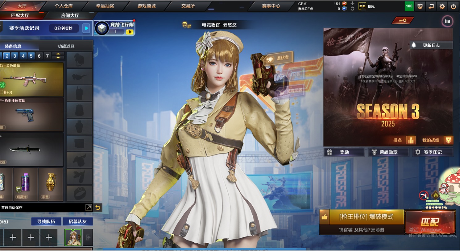 1英雄角色 1王者武器 9v武器 可二次 可修改实名 【排位资格】:有 【v武器】:m200-竞技荣光m4a1-雷神q03-金色蔷薇擎天-竞技荣光 【王者武器】:王者之怒