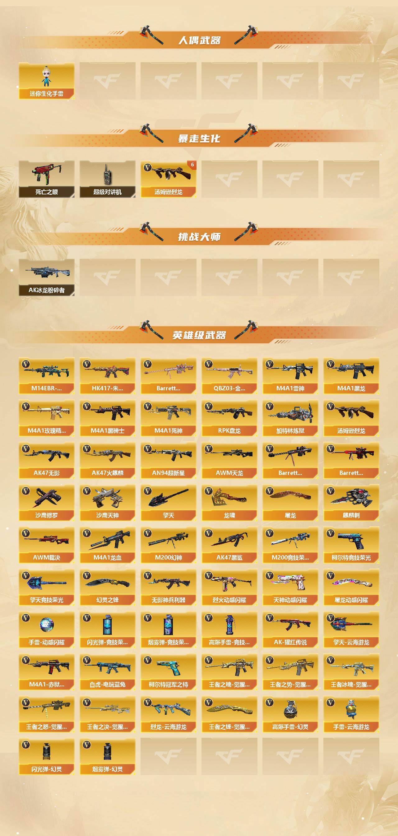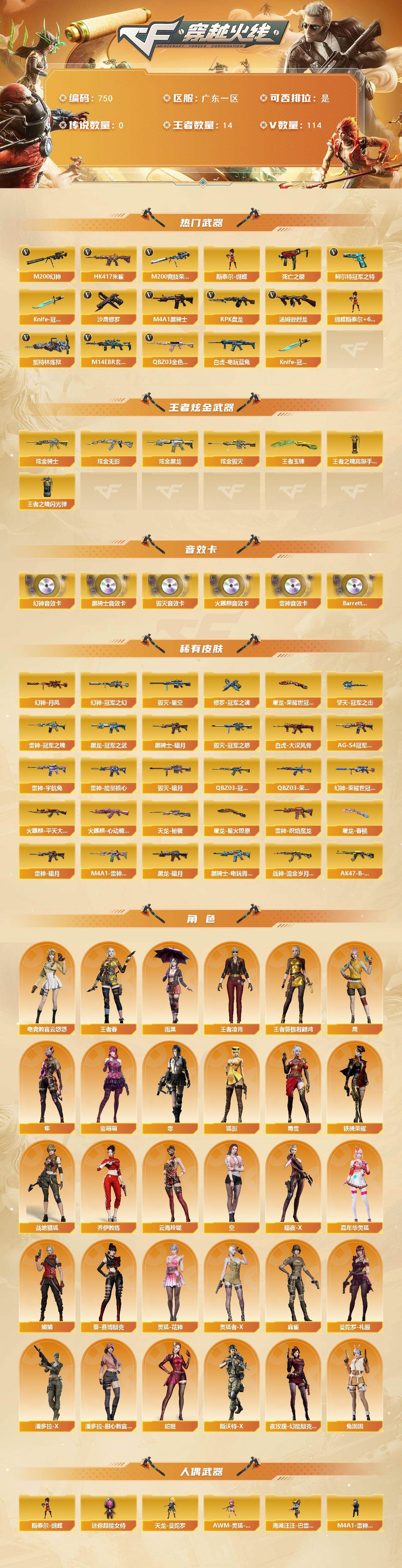 [14361401]广东一区-114v-14王者-4炫金 【热门武器】:q03-金色蔷薇,m14ebr-玄武,hk417-朱雀,m200-幻神3,m200-竞技荣光,死亡之眼,白虎-电玩蓝兔,柯尔特-冠军之特2,m4a1-黑骑士,汤姆逊-烈龙6,rpk-盘龙,加特林-炼狱2,斯泰尔-蝴蝶,沙鹰-修罗3,knife-冠军之刃2 【王者炫金武器】:王者玉锋,炫金骑士,炫金无影,炫金黑龙,炫金毁灭,王者之魄高爆手蕾,王者之魄闪光丹 【音效卡】:m200-幻神音效卡,ak47-火麒麟音效卡,m4a1-雷神音效卡,m4a1-黑骑士音效卡,barrett-毁灭音效卡,barrett-碧霄极光音效卡 【皮肤】:幻神-冠军之幻,幻神-丹凤,m200-幻神-荣耀世冠白鲨,白虎-大汉风骨,q03-冠军之薇,q03-荣耀世冠白鲨,雷神-暗月,雷神-能量核心,雷神-冠军之魄,雷神-宇航兔皮肤,雷神-炽焰魔龙,m4a1-雷神-巅峰荣耀皮肤,火麒麟-平天大圣,火麒麟-心动糖果,毁灭-暗月,毁灭-星空,毁灭-冠军之怒,黑龙-暗月,黑龙-冠军之武,黑骑士-暗月,黑骑士-ag-s4冠军典藏,黑骑士-电玩青兔皮肤,战神-流金岁月皮肤,ak47-b-常胜将军-孙权,天龙-秘银,修罗-冠军之魂2,屠龙-荣耀世冠ag,屠龙-星火燎原,屠龙-春桃 皮肤,擎天-冠军之击 【角色】:零,雨棠,电竞教官-云悠悠,鹰,雾萌萌,隼,战地猎狐,王者葵-惊若翩鸿,王者春,王者凌霄,狐影,乔伊教练,云海玲珑,空,暗夜-x,嘉年华灵狐,娟娟,葵-赛博朋克,灵狐-花神,灵狐者-x,麻雀,曼陀罗-礼服,潘多拉-x,潘多拉-甜心教官,蛇姬,斯沃特-x,蜀雪,铁骑荣耀,兔囡囡,夜玫瑰-幻能朋克 【人偶武器】:天龙-曼陀罗,m4a1-雷神-精英刀锋,斯泰尔-蝴蝶,awm-灵狐-15周年嘉年华,海滩汪汪-芭蕾特,迷你生化手蕾2,迷你超能女侍 【暴走生化】:死亡之眼,超级对讲机 【挑战大师】:ak47-冰龙粉碎者 【英雄级武器】:ak47-火麒麟2,m4a1-黑龙5,m4a1-雷神,m4a1-黑骑士,ak47-无影,m4a1-死神2,an94-超新星,ak47-黑鲨,m4a1-龙血2,hk417-朱雀,m14ebr-玄武,无影-神兵利器,m4a1-玫瑰精灵,q03-金色蔷薇,烈火-动感闪耀,王者之魄-觉醒版,王者之势-