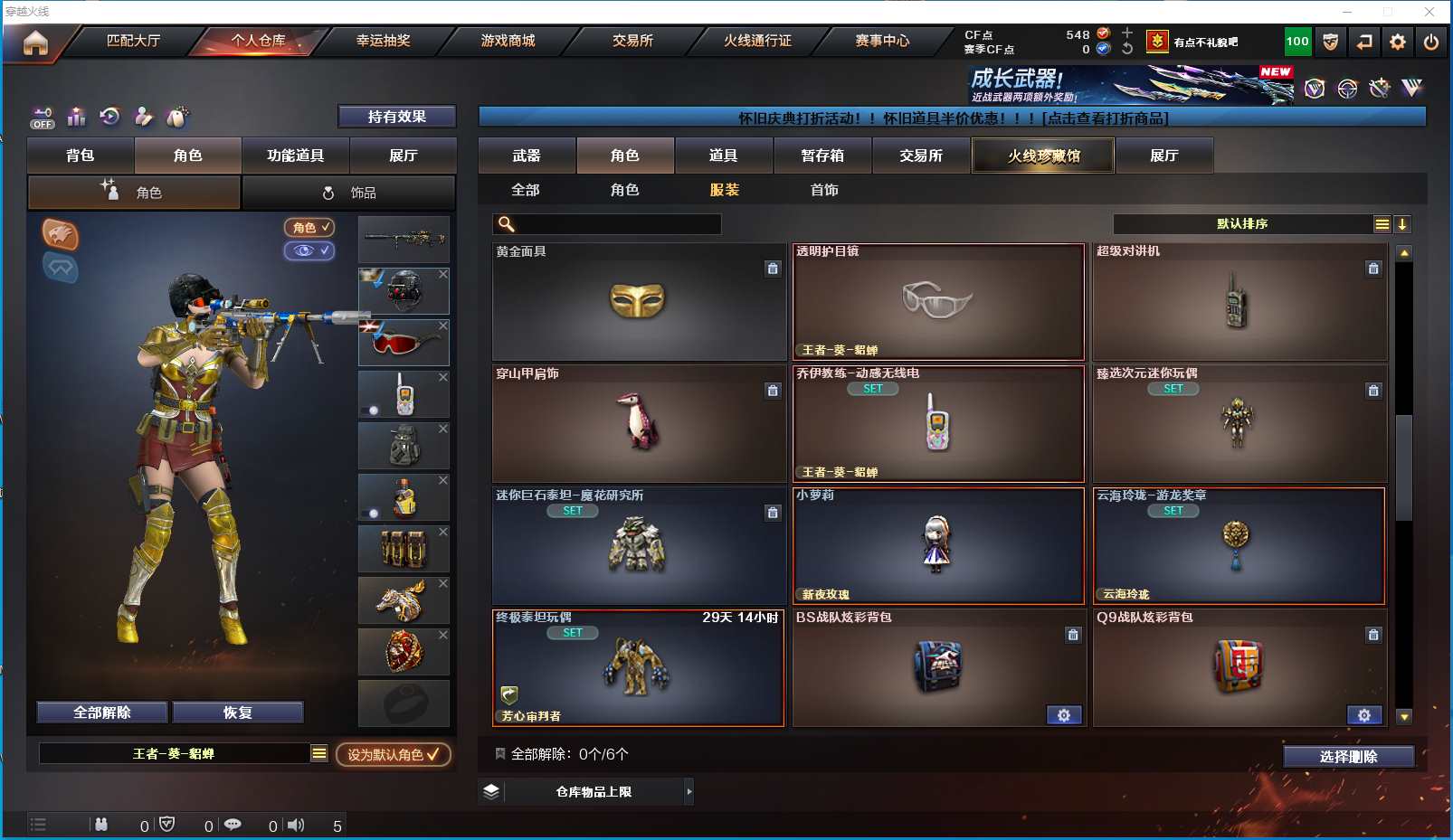 光哥11-北部-辽宁一区-极品爆破号 【可排位】【88V】G36C幻影幻神④色冠幻白鲨幻神音效卡qbz②色白虎②色星神王者风神⑦手枪③音效质量皮肤 【堕天神套】【M200-幻神/M200-幻神音效卡/幻神-冠军之幻/M200-幻神-荣耀世冠白鲨/幻神-丹凤/幻神-纸灯龙皮肤】【Kar98K-星神】【王者之幻/王者风神】【Knife-冠军之刃】【G36C-幻影】【Scar Light-白虎/Scar Light-白虎-暗星/白虎-霓虹机甲 皮肤】【QBZ03-金色蔷薇/QBZ03-巅峰荣耀皮肤/金色蔷薇-纸灯龙皮肤】【M4A1-雷神2/雷神-荣耀之魄/M4A1-雷神-巅峰荣耀皮肤/雷神-机甲刑天皮肤/雷神-烈虎皮肤】【COP 357-雷霆王者/COP 357-幻灵/COP-堕天神】【Barrett-毁灭/Barrett-毁灭音效卡/毁灭-风暴2/毁灭-青帝皮肤/毁灭耀金皮肤】【AK47-火麒麟2/火麒麟-百城/火麒麟-CFSTAR2/火麒麟-心动糖果/火麒麟-平天大圣】【M4A1-黑骑士2/M4A1-黑骑士音效卡/黑骑士-海王/黑骑士-AG-S4冠军典藏】【无影-神兵利器】【AWM-天龙/天龙-CFSTAR/AWM-天龙-传奇白鲨】【AWM-裁决】【M4A1-千变/M4A1-千变-孔明皮肤】【汤姆逊-烈龙2/烈龙-云海游龙】【迷你生化手雷】【沙鹰-修罗2/修罗-星空/修罗-能量核心】【沙鹰-天神/天神-动感闪耀】【麒麟刺3】【擎天-云海游龙】【屠龙2/屠龙-动感闪耀】【龙啸-堕天神2/龙啸-烈火龙威】【职业选手/机械姬/王者-迷迭香/王者-零/王者-葵-貂蝉/迷迭香/龙儿-小淘气/暗夜-X/樱-青春偶像/卡塔琳娜/莎莎/木兰/云海玲珑/乔伊教练/修道士/超能特工/荆棘玫瑰/麻雀/紫霞/青霞仙子/妲己/蜀雪/娟娟/潘多拉-X/斯沃特-X】【M4A1-青龙/M4A1-龙血/M4A1-堕天神】【AK47-B-常胜将军/AK47-B-身先士卒/AK47-B-战士/AK-47-猩红传说】【AA-12-雷霆】【Barrett-暗月传说】【Colt1911-小故障/Colt 1911-大黄蜂4/柯尔特-萌杀2/COP 357-青龙/新USP-枪王排位奖励4】【雷霆王者之锋/金刚伞/迷你深渊冰龙】【神圣爆裂者-末日III/激光毁灭者III-白马银枪2/激光毁灭者III/冰龙粉碎者-白马银枪/巨龙咆哮-深渊金】【猫猫手套/巴雷特-零-水下丽影/天龙-曼陀罗/金色小号】【凤吟之魄/王者之心/王者之刺/王者之魄/王者冰魄/王者之魂/王者之锋2/王者之击/王者之啸】【高爆手雷-竞技荣光】【手雷-云海游龙】【高爆手雷-雷霆王者2/闪光弹-雷霆王者/烟雾弹-雷霆王者】【高爆手雷-堕天神5/闪光弹-堕天神5/烟雾弹-堕天神5】【高爆手雷-幻灵/闪光弹-幻灵/烟雾弹-幻灵】【炫金雷神】【语音特效-云海游龙/语音特效-机器人2】【超级护目镜/透明护目镜/烟雾保护头盔/闪光护目镜/超级对讲机/超级背包/炫彩背包/防弹头盔/防弹衣/C4工具钳2/手雷包2/防化服】 更多亮点详情请看图