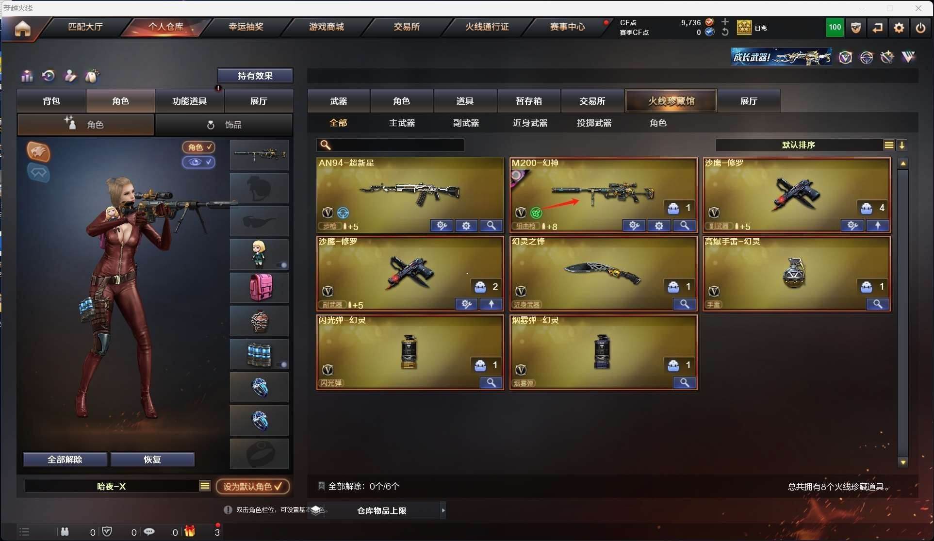 CFD465486号河南一区【m200幻神宠儿皮肤n9皮肤电流骇客皮肤】【超新星 】——【修罗2】——【幻灵之锋】——【幻灵投掷武器套装】——【角色】【暗夜x 灵动武士】