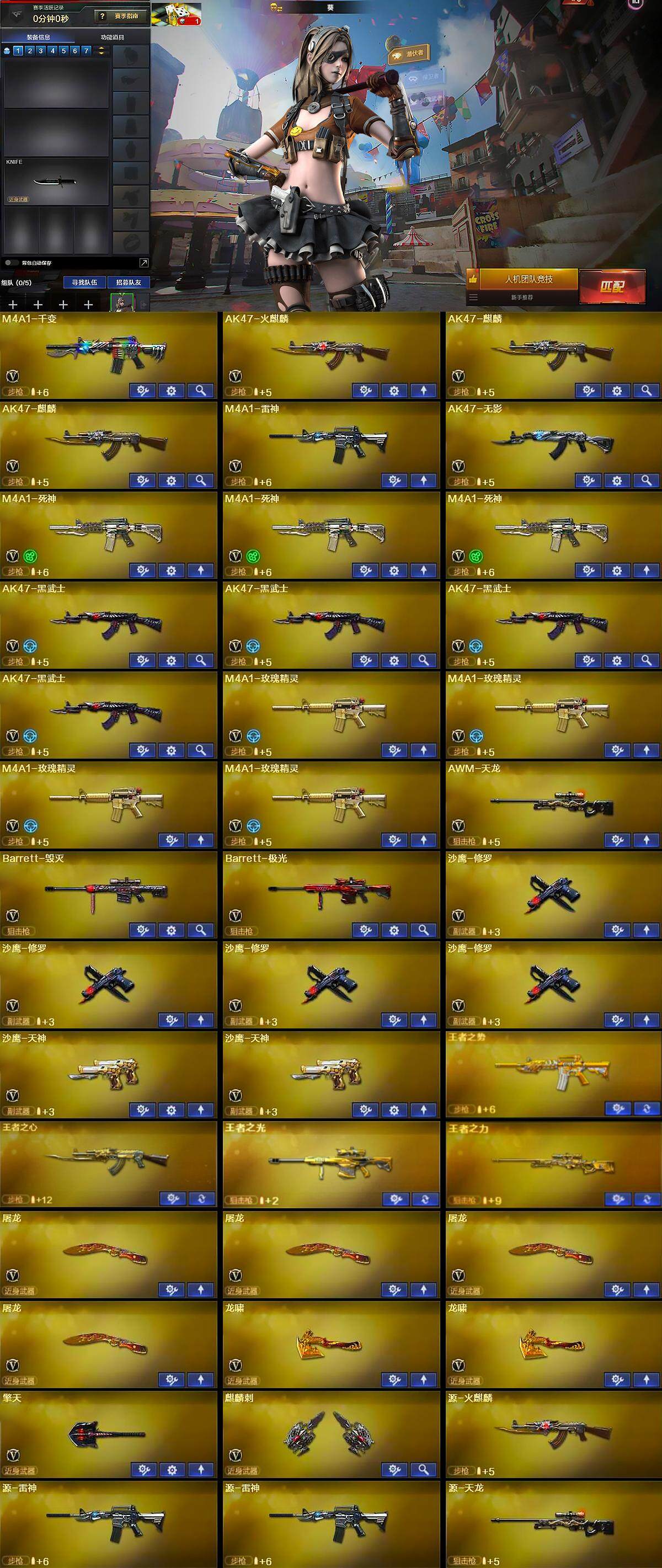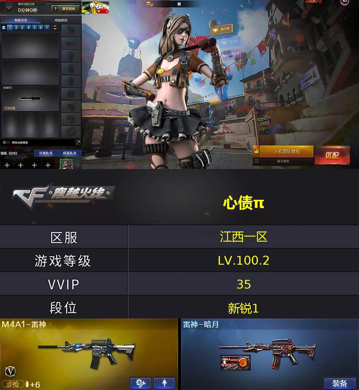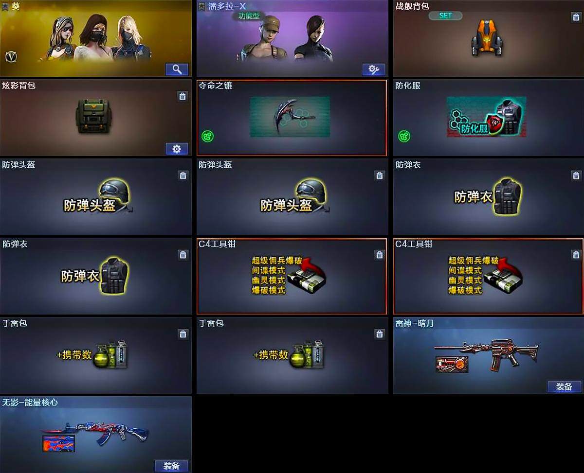 [14388579]江西一区-35v-4王者-0炫金 【热门武器】:沙鹰-修罗4 【王者炫金武器】:王者之势,王者之心,王者之光,王者之力 【皮肤】:雷神-暗月,无影-能量核心 【角色】:葵,潘多拉-x 【英雄级武器】:m4a1-千变,ak47-火麒麟,ak47-麒麟2,m4a1-雷神,ak47-无影,m4a1-死神3,ak47-黑武士4,m4a1-玫瑰精灵4,awm-天龙,barrett-毁灭,barrett-极光,沙鹰-修罗4,沙鹰-天神2,屠龙4,龙啸2,擎天,麒麟刺 【道具】:战舰背包,炫彩背包,夺命之镰,防化服,防弹头盔2,防弹衣2,c4工具钳2,手蕾包2 【特殊呛械】: