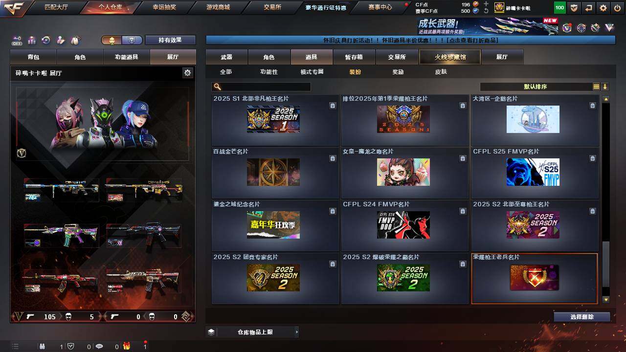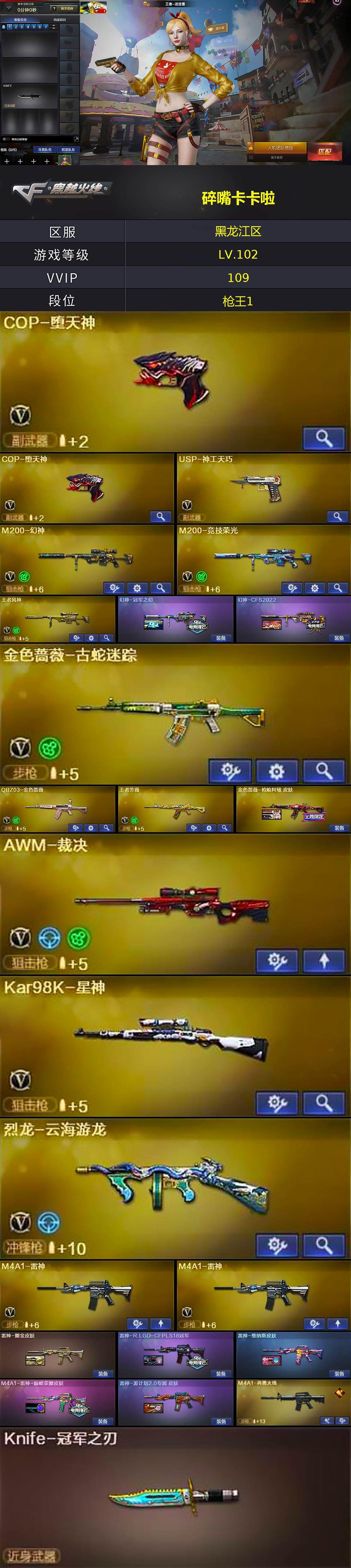 【1288】贝27611可排位-可二次【纯白无封号】【黑龙江区/110v/vip3】【臻选套/堕天神套/天巧套】【鹰/隼】【堕天神套/神工天巧套】【炽芒蝶刃/knife-冠军之刃】【usp-神工天巧/cop-堕天神2/柯尔特-赛博朋克】【m200-幻神/幻神-冠军之幻/幻神-cfs2022】【m200-竞技荣光】【kar98k-星神/星神-炽天使】【awm-裁决/裁决-百城皮】【王者风神】【q03-金色蔷薇/金色蔷薇-呛娘阿敏皮】【q191-银翼/王者芳薇/王者之光】【m4a1-雷神2/雷神-巅峰荣耀皮/雷神-r.lgd/雷神-耀金皮肤/雷神-维纳斯皮肤】【barrett-毁灭/毁灭-暗月】【ak47-火麒麟2/火麒麟-百城/火麒麟-cfstar/火麒麟-心动糖果】【m4a1-神工天巧/m4a1-猎神/m4a1-堕天神/m4a1-千变】【m4a1-黑骑士/m4a1-黑骑士音效卡/黑骑士-ag-s4冠军典藏】【黑龙-能量核心】【无影-神兵利器】【ak47-黑武士】【天龙-cfstar/awm-天龙-传奇白鲨】【barrett-极光/barrett-极光音效卡】【烈龙-云海游龙】【炼狱-星空】【沙鹰-修罗/修罗-cfstar2/修罗-冠军之魂/修罗-星空】【天神-动感闪耀】【擎天-云海游龙/擎天-竞技荣光】【屠龙/屠龙-云海游龙/屠龙-动感闪耀/屠龙-春桃 皮肤】【龙啸/龙啸-冠军之啸/龙啸-纸灯龙皮肤/龙啸-堕天神】【王者潘多拉/雨棠/迷迭香/暗夜-x/兰-巾帼英雄/女战神/木兰/云海玲珑/乔伊教练/修道士/兔囡囡/灵狐-花神/麻雀/妲己/娟娟/潘多拉-x/斯沃特-x/铁骑荣耀/幻影/堕天使/复仇者】【】【ak47-黑鲨/ak12-天启】【colt1911-小故障2/colt 1911-大黄蜂2/柯尔特-萌杀/cop 357-青龙/新usp-呛王排位奖励3】【迷你深渊冰龙/唐刀-神工天巧2】【神圣爆裂者-末日iii/机甲撕裂者iii/vepr-12-金魔/kac-圣炎切割者iii/激光毁灭者iii/冰龙粉碎者-白马银呛/巨龙咆哮-深渊金/阐释者iii】【斯泰尔-巧克力】【芭蕾特-零-水下丽影/迷你宝贝/迷你裂空之翼2】【闪光丹-竞技荣光/盐雾蛋-竞技荣光】【手蕾-云海游龙】【高爆手蕾-雷霆王者/盐雾蛋-雷霆王者】【高爆手蕾-堕天神9/闪光丹-堕天神7/盐雾蛋-堕天神7】【高爆手蕾-神工天巧8/闪光丹-神工天巧8/盐雾蛋-神工天巧8】【盐雾蛋-幻灵】【语音特效-云海游龙/语音特效-机器人】【超级护目镜/超级背包/防弹头盔2/防弹衣2/c4工具钳2/手蕾包2/防化服2】