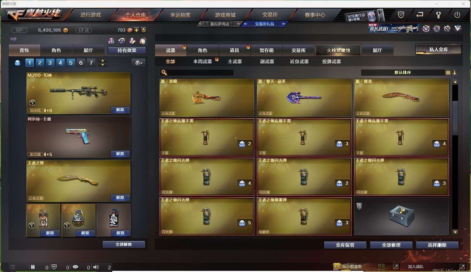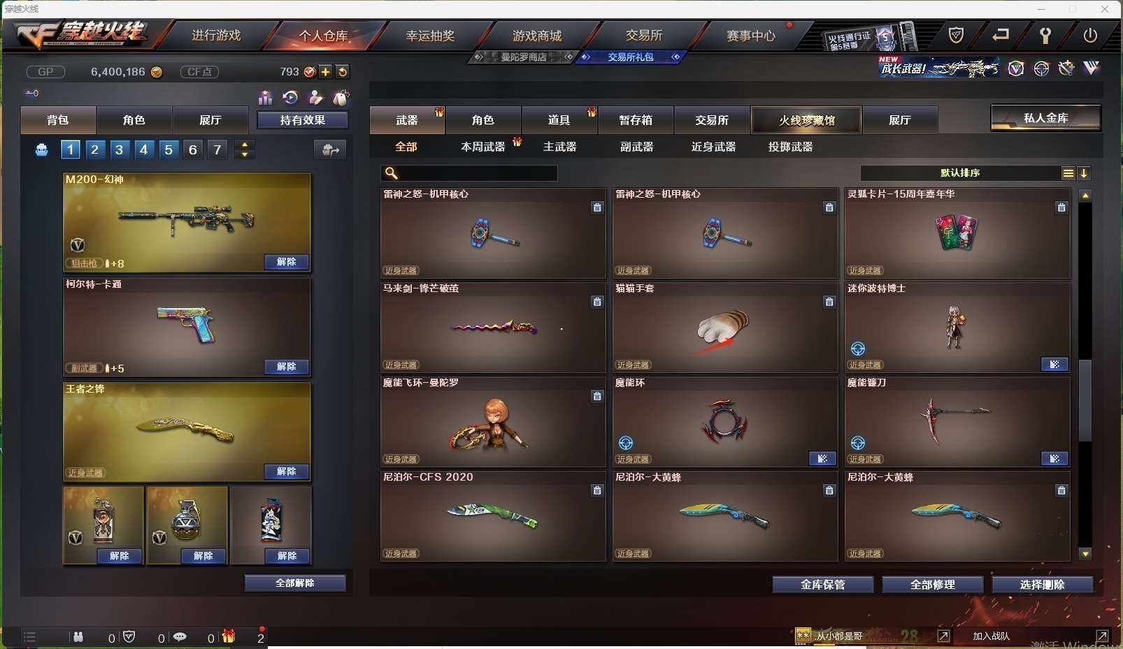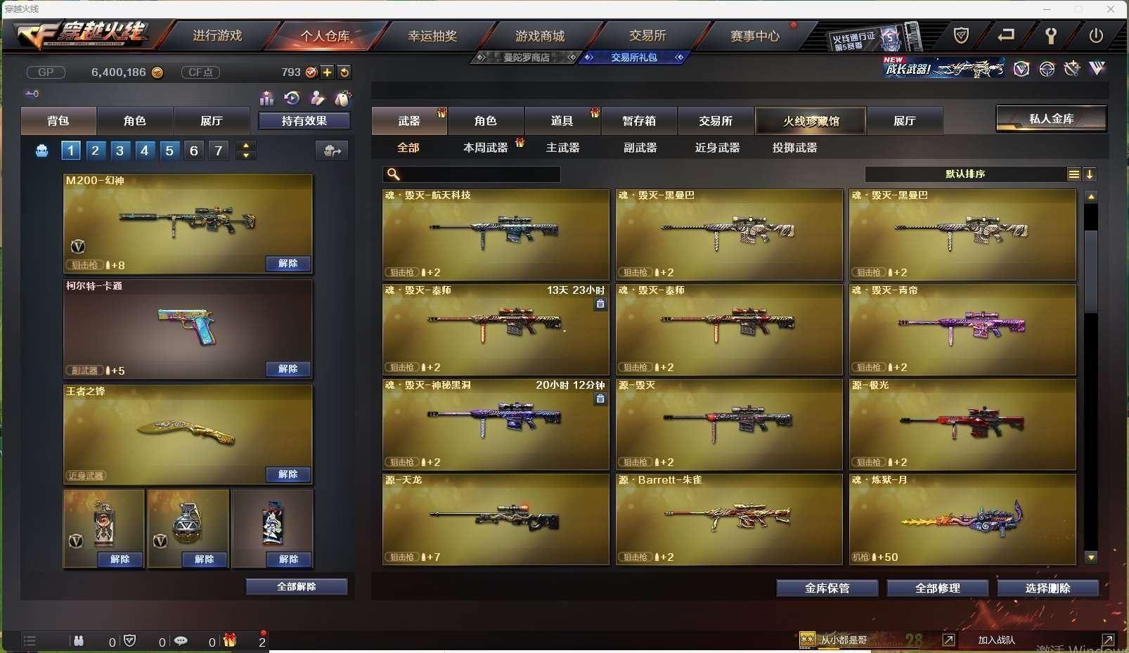 四川一区15v【m200幻神荣耀世冠白鲨皮肤】【王者冰魄】【火麒麟】【毁灭】【无影神兵利器】——【热门武器/小人呛】【芭蕾特零水下丽影 awm灵狐15周年嘉年华 猫猫手套】——【cop357幻灵 修罗 王者之魂】——【幻灵之锋 龙啸烈火龙威 王者之锋】——【幻灵投掷武器套装王者之魄投掷武器套装 】——【角色】【司雨】【乔伊教练】
