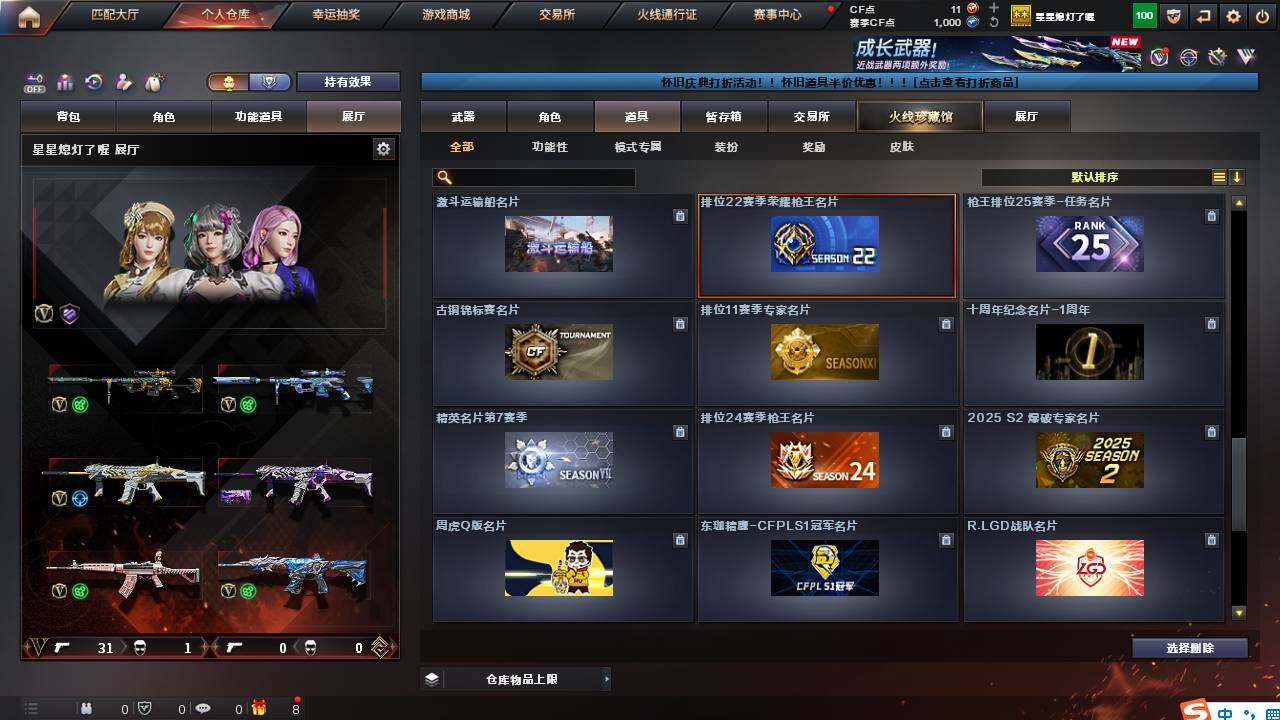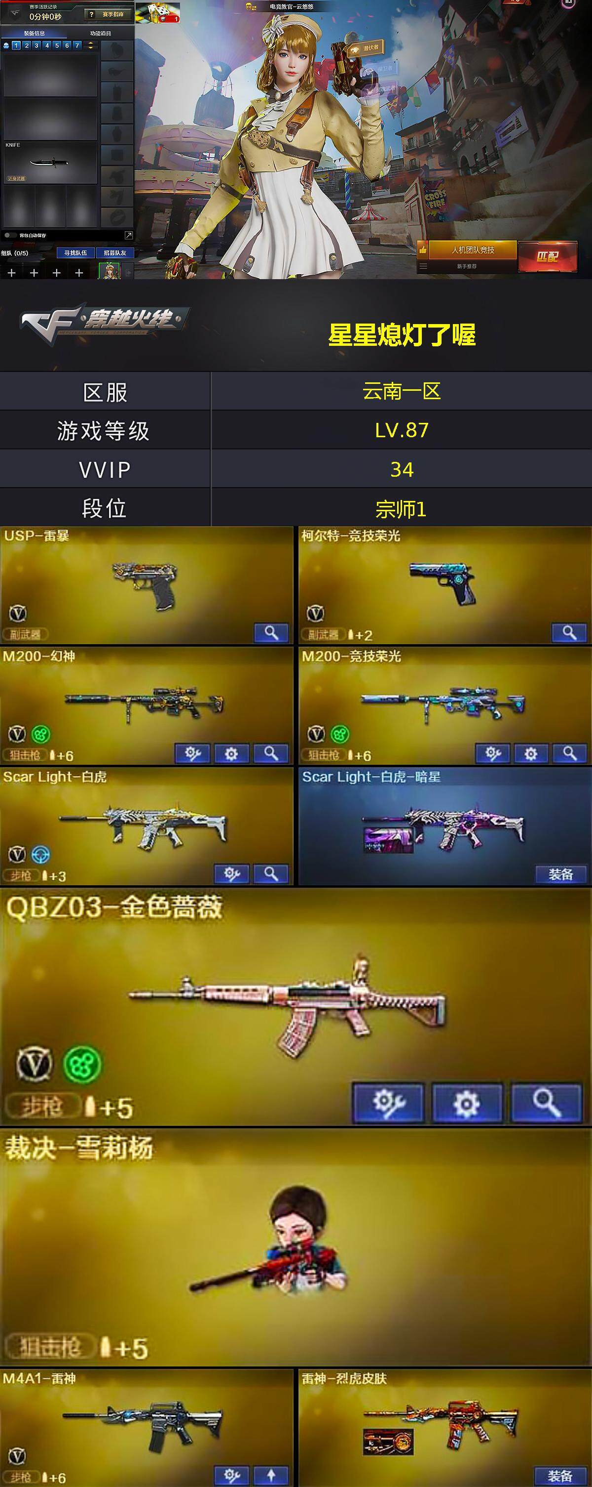 【1289】贝27689可排位-可二次【云南一区/32v/vip1】【竞技荣光套】【m200-幻神】【m200-竞技荣光】【柯尔特-竞技荣光/usp-雷暴】【scar light-白虎/scar light-白虎-暗星】【q03-金色蔷薇】【hk417-朱雀-电竞之星/hk417-朱雀-竞星跃动音效卡】【m4a1-雷神/雷神-烈虎皮肤】【barrett-毁灭/毁灭-cfs2020】【ak47-火麒麟2/火麒麟-心动糖果/火麒麟-平天大圣】【m4a1-黑龙】【ak47-无影】【沙鹰-天神】【屠龙-电竞之星】【麒麟刺】【擎天-竞技荣光】【屠龙/屠龙-秘银】【电竞教官-云悠悠/王者葵-惊若翩鸿/修道士/潘多拉-x/斯沃特-x/堕天使/复仇者】【柯尔特-萌杀/新usp-呛王排位奖励3】【斩魔刀/斩神刀】【高爆手蕾-竞技荣光5/闪光丹-竞技荣光4/盐雾蛋-竞技荣光4】【炫金毁灭】【超级对讲机/防弹头盔2/防弹衣2/c4工具钳2/手蕾包2/防化服2】
