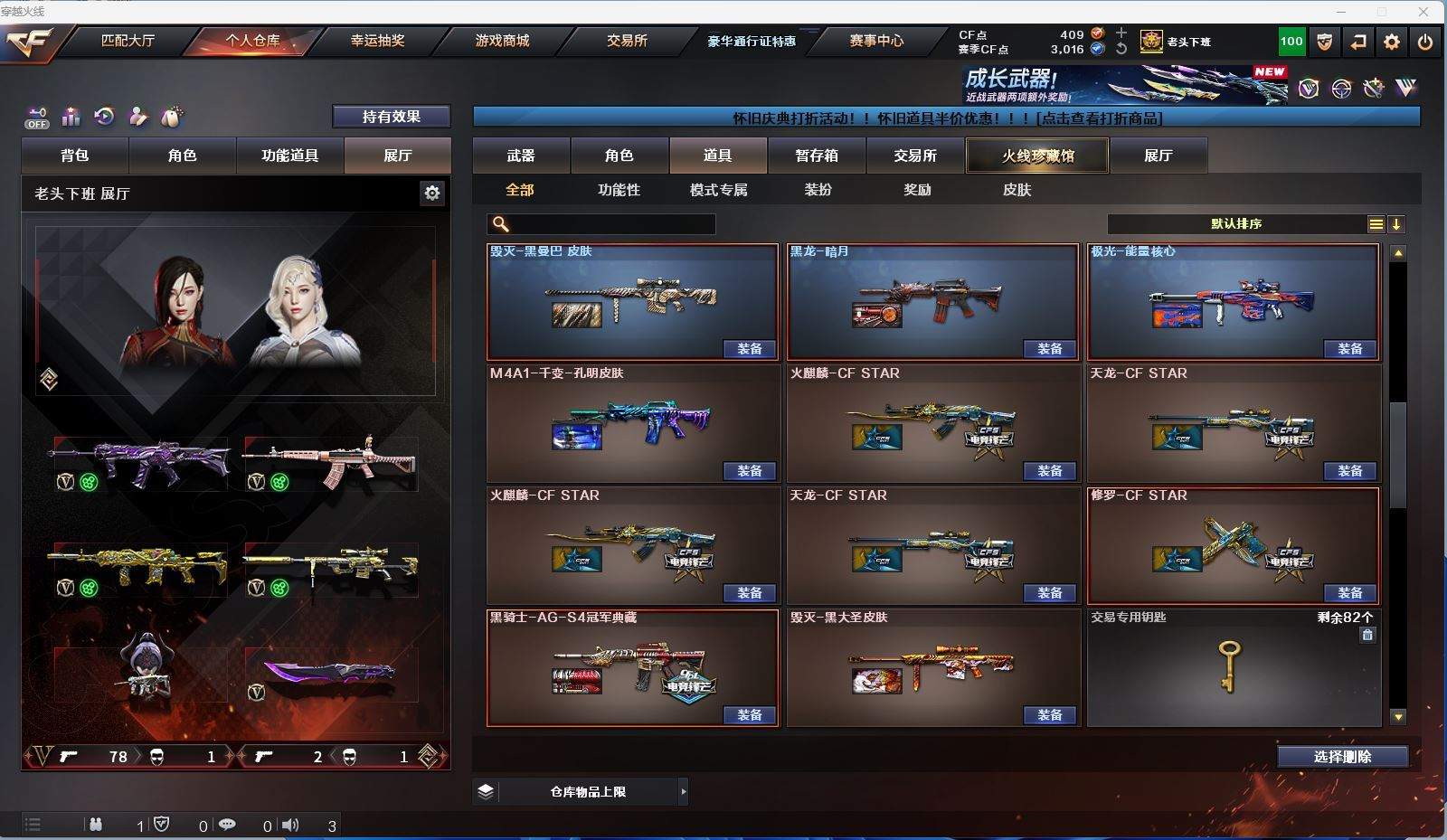m31【找回包赔】【北京一区/73V/vip1/3传说】【传说女帝/传说圣灵】【王者幻神】【VSK-94-金蚀】【USP-雷暴】【QBZ-03-王者蔷薇/QBZ03-金色蔷薇】【M4A1-雷神3/雷神-维纳斯皮肤】【Barrett-毁灭/Barrett-毁灭音效卡/毁灭-黑曼巴 皮肤】【AK47-火麒麟/AK47-火麒麟音效卡/火麒麟-CFSTAR2/火麒麟-盘古】【M4A1-黑骑士/M4A1-黑骑士音效卡/黑骑士-海王2/黑骑士-AG-S4冠军典藏】【M4A1-黑龙/黑龙-能量核心】【HK417-朱雀】【黑武士-CF网剧冠军】【天龙-CFSTAR2】【Barrett-极光/极光-能量核心】【AWM-裁决/AWM-裁决音效卡】【M4A1-千变-孔明皮肤】【RPK-盘龙】【沙鹰-修罗5/修罗-CFSTAR】【沙鹰-天神/天神-CF网剧冠军】【麒麟刺】【擎天3/擎天-CF网剧冠军】【屠龙2】【王者炫/龙儿/兰-新年限定/灵狐者-黄金海岸/妲己/娟娟/潘多拉-X/铁骑荣耀/堕天使/复仇者】【M4A1-玫瑰精灵】【AN94-超新星】【Colt1911-小故障/Colt 1911-大黄蜂4/COP 357-青龙/新USP-枪王排位奖励】【雷霆王者之锋/迷你深渊冰龙】【神圣爆裂者-末日III/KAC-圣炎切割者III/激光毁灭者III/AK47-冰龙粉碎者】【斯泰尔-巧克力】【猫猫手套/白虎-迷你小艾/火麒麟-灵狐/M37-葵/夺魂】【王者玄武/王者之影】【高爆手雷-雷暴/闪光弹-雷暴/烟雾弹-雷暴】【高爆手雷-雷霆王者/烟雾弹-雷霆王者】【超级护目镜/烟雾保护头盔/闪光护目镜/超级对讲机/超级背包/防弹头盔9/防弹衣7/C4工具钳4/手雷包4/防化服4】