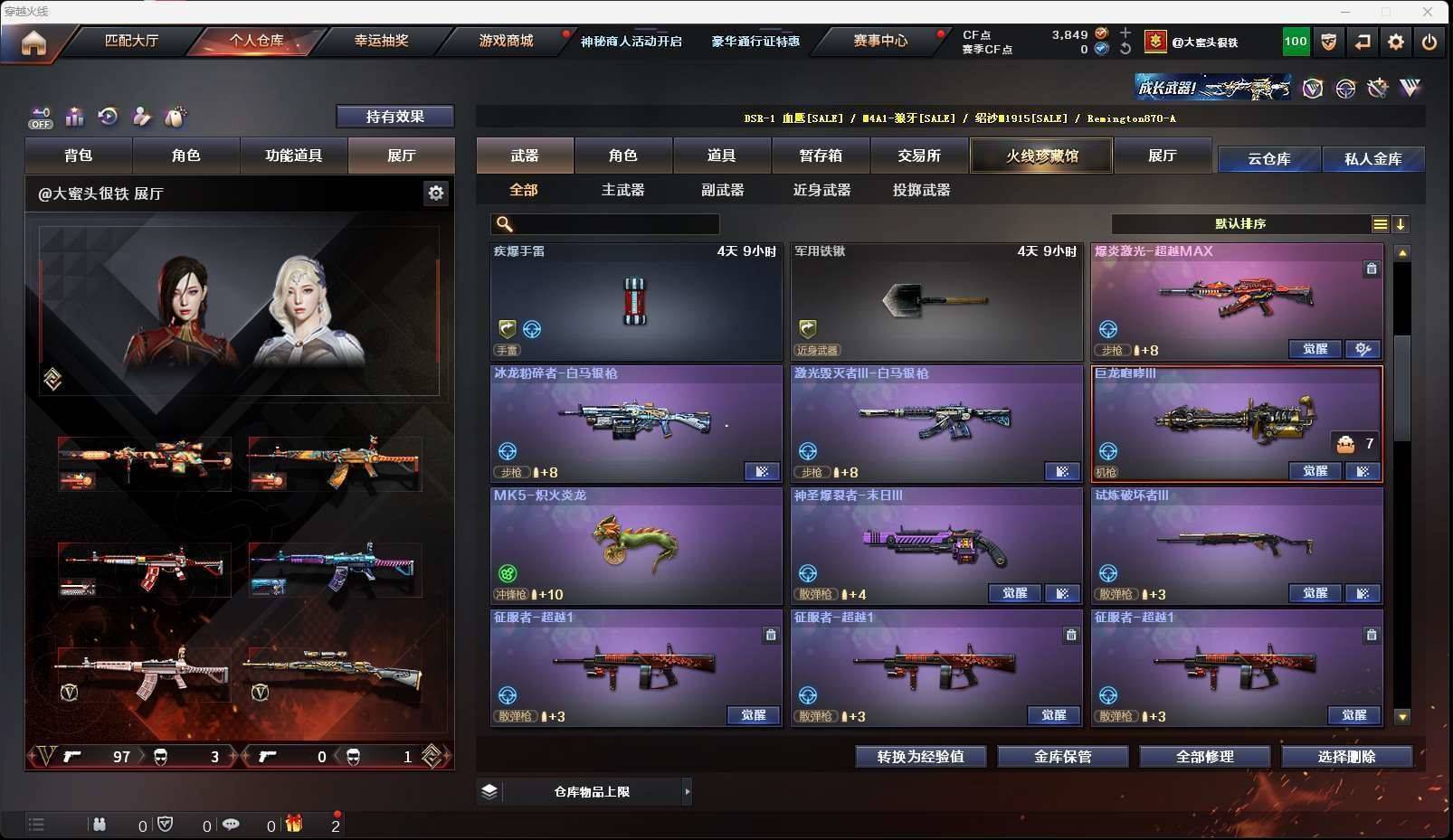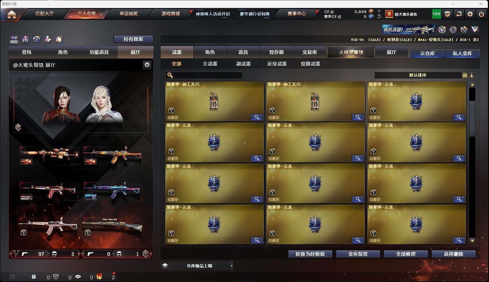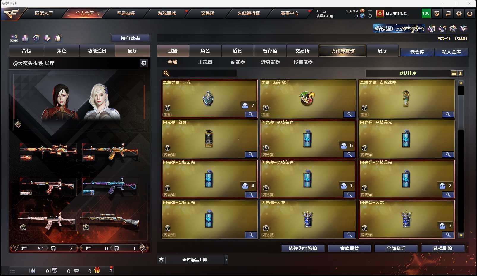 m35【找回包赔】女帝精品全装号👇【云南一区/92v/vip1/1传说】【传说女帝】【鹰/华】【竞技荣光套】【m200-幻神/幻神-纸灯龙皮肤】【m200-竞技荣光】【王者星神】【qbz03-云龙2】【柯尔特-竞技荣光/usp-雷暴/usp-神工天巧】【qbz03-金色蔷薇/qbz03-荣耀世冠白鲨/qbz03-ag-cfpls19冠军/金色蔷薇-纸灯龙皮肤】【qbz03-天罚】【m4a1-雷神2/雷神-r.lgd-cfpls18冠军/雷神-维纳斯皮肤/雷神-暗月】【cop 357-幻灵/cop 357-云龙】【barrett-毁灭/毁灭-青帝皮肤】【ak47-火麒麟/火麒麟-cfstar/火麒麟-心动糖果/火麒麟-雷神】【m4a1-黑骑士/黑骑士-冠军之势】【黑龙-能量核心】【无影-神兵利器】【ak47-黑武士/黑武士-锦绣游龙/黑武士-典韦皮肤】【barrett-极光】【炼狱-悦蓝】【沙鹰-修罗3/修罗-cfstar2】【沙鹰-天神/天神-动感闪耀】【云龙扇】【麒麟刺/麒麟刺-萌杀皮肤】【擎天-竞技荣光】【屠龙/屠龙-动感闪耀】【龙啸/龙啸-烈火龙威】【王者沙漠玫瑰/电竞教官-云悠悠/女主播/暗夜-x/木兰/奇洋探员/乔伊教练/兔囡囡/超能特工/灵狐-花神/萌儿/麻雀/青霞仙子/妲己/蜀雪/潘多拉-x/斯沃特-x/救世主-x/幻影/复仇者】【白虎-电玩/scar light-像素/ak47-b-战神/ak-47-猩红传说】【超新星-热带奇洋】【barrett-暗月传说2】【colt1911-小故障2/colt 1911-大黄蜂2/柯尔特-萌杀/cop 357-青龙/新usp-呛王排位奖励3】【龙啸-热带奇洋/金刚伞-电玩红兔/迷你深渊冰龙】【神圣爆裂者-末日iii/激光毁灭者iii-白马银呛/冰龙粉碎者-白马银呛】【斯泰尔-巧克力/轻型军用手斧-镜】【猫猫手套/王者m4a1-萌萌金发刀锋/黄金迷你深渊冰龙/黄金迷你裂空之翼/迷你裂空之翼/夺魂2/mk5-炽火炎龙】【高爆手雷-竞技荣光5/闪光丹-竞技荣光6/盐雾蛋-竞技荣光5】【高爆手雷-云龙9/闪光丹-云龙8/盐雾蛋-云龙10】【盐雾蛋-神工天巧2】【高爆手雷-幻灵2/闪光丹-幻灵/盐雾蛋-幻灵】【手雷-热带奇洋】【炫金骑士】【女战神梧桐语音包】【超级护目镜/烟雾保护头盔/闪光护目镜/超级对讲机/超级背包/炫彩背包/防弹头盔2/防弹衣2/c4工具钳2/手雷包2/防化服2】