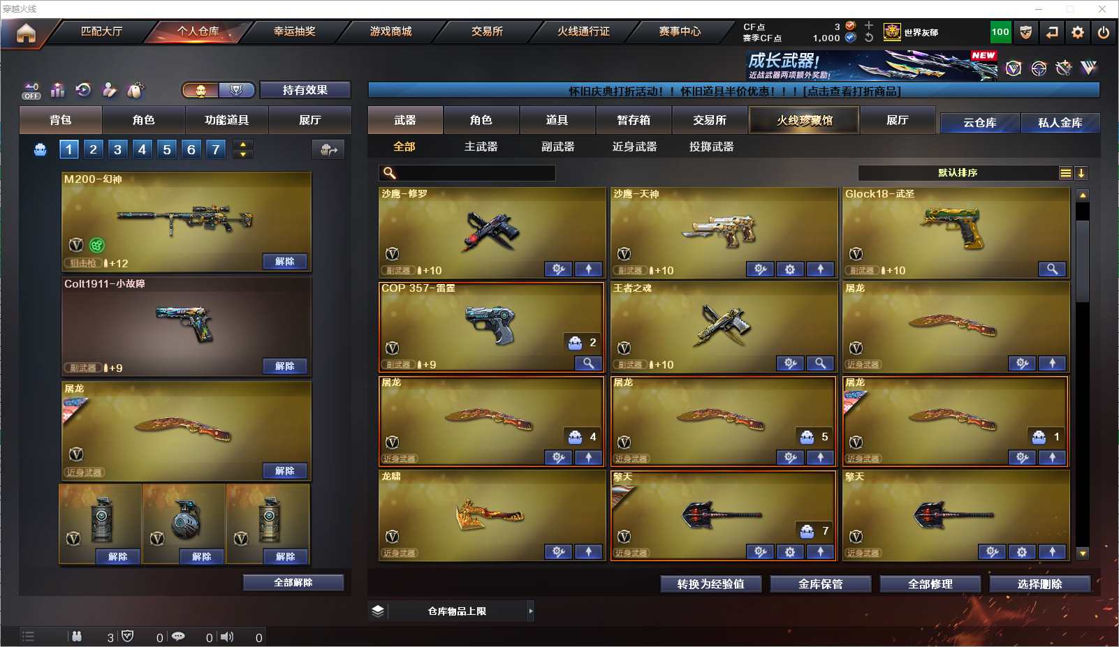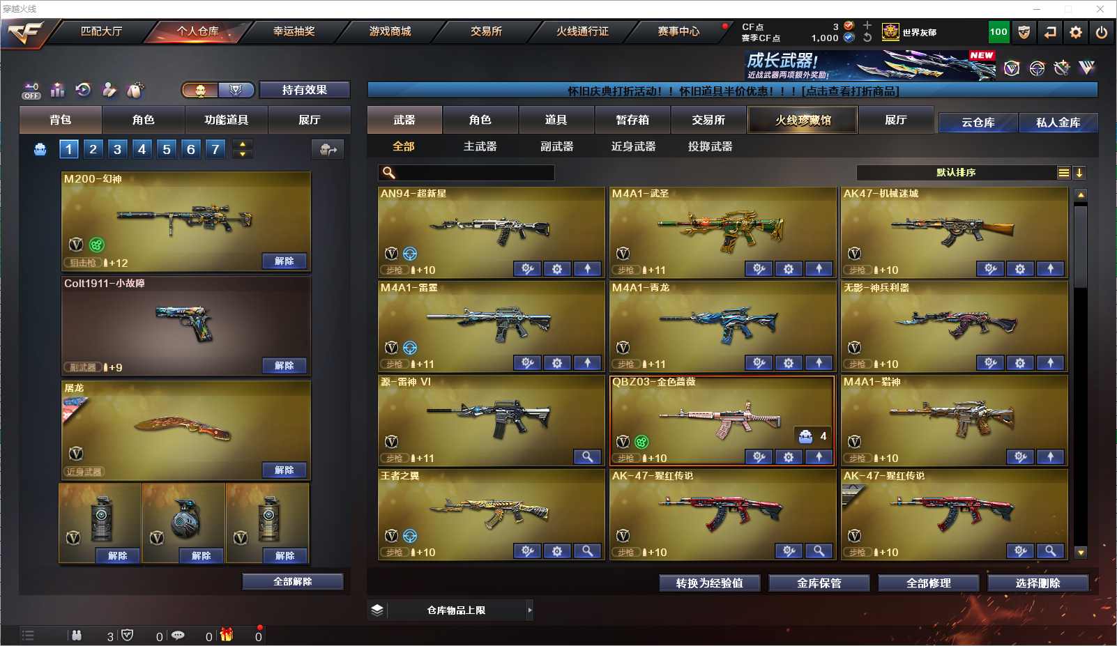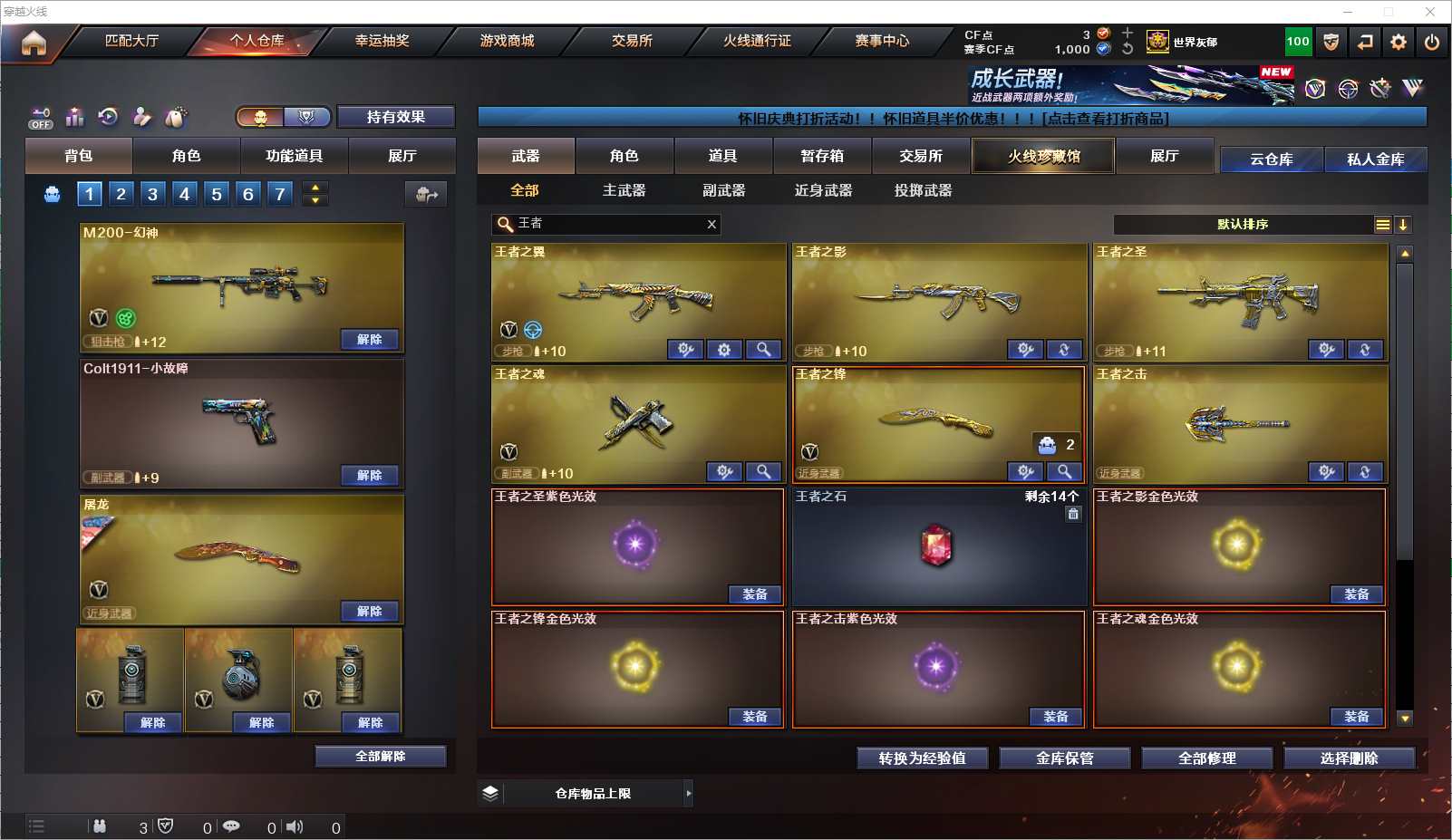 077-CF4115 【北京一区】【可二次】【可排位】 97v 6王者 9炫金 【重要角色】葵/魅影/炫/隼/狐影/修道士/龙儿-小淘气/铁扇公主/电竞少女/铁骑荣耀 【英雄武器】M200-幻神/Barrett-毁灭3/Barrett-极光2/barrett-金色蔷薇/雷霆之怒/AWM-天龙4/AWM-裁决/M4A1-青龙/M4A1-雷神2/M4A1-死神2/M4A1-黑龙/M4A1-千变/M4A1-黑骑士2/M4A1-武圣/M4A1-雷霆/M4A1-猎神/AK12-天启/AK47-火麒麟/AK47-无影/无影-神兵利器/AK47-黑武士/AK-47-猩红传说9/AK47-机械迷城/AK47-B-战士/AK47-B-战神/AN94-超新星/QBZ03-金色蔷薇/王者之翼-觉醒版/汤姆逊-烈龙3/加特林-炼狱/雷霆之契/沙鹰-天神/沙鹰-修罗8/王者之魂-觉醒版/Glock18-武圣/麒麟刺/龙啸/擎天2/屠龙4/雷霆之锋/王者之锋-觉醒版/高爆手雷-雷霆7/烟雾弹-雷霆7/闪光弹-雷霆7/龙啸-烈火龙威 【王者武器】王者之影/王者之圣/王者之击 【小人枪】C.A.T/AWM-灵狐-15周年嘉年华2/COP-旗袍/魔能飞环-曼陀罗/冰火魔兽 【其他重要武器】炫金千变/炫金火麒麟/炫金雷神/炫金黑龙/炫金无影/炫金天龙/炫金毁灭/炫金修罗2【重要武器皮肤】毁灭耀金皮肤/天龙-CFSTAR/天龙-秘银/天龙-能量核心/无影-能量核心/AK-47-雷神/雷神-神秘按键 皮肤/雷神-源计划2.0专属 皮肤/雷神-暗月/雷神-能量核心/黑骑士-地狱火/黑骑士耀金皮肤/黑龙-能量核心/死神-秘银/战神-流金岁月皮肤/战神-紫绶金章皮肤/战神-粉色甜心皮肤/修罗耀金皮肤/屠龙-春桃 皮肤/擎天-秘银 【重要音效卡】M4A1-黑骑士音效卡/Barrett-毁灭音效卡 等等装备和皮肤~ 截图展示段位不代表实际段位,如赛季更新等不可抗拒因素发生变化、时限道具不保证所剩时间,其余道具看截图或咨询客服 【小述账号 安全无忧】