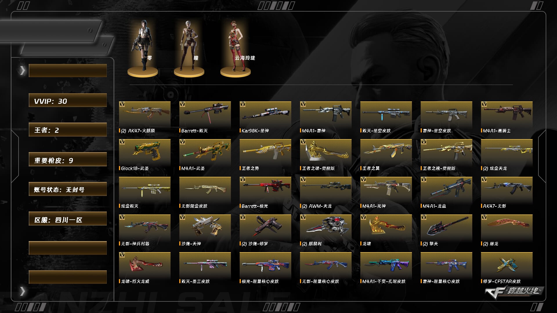 [14409437]xh9331/西部/四川一区/可排位/【lv.100 元帅】/30v/星神/王者之魄/极光/毁灭/雷神/黑骑士/武圣/火麒麟/无影神兵利器/无影/天神/修罗/王者之啸/麒麟刺/龙啸/龙啸烈火龙威/屠龙/【皮肤音效卡】/毁灭音效卡/火麒麟音效卡/【角色】/零/瞳/云海玲珑/【玩偶武器】/火麒麟灵狐/cop旗袍///各种道具、饰品/细节看图/【此账号未被封过十年】/