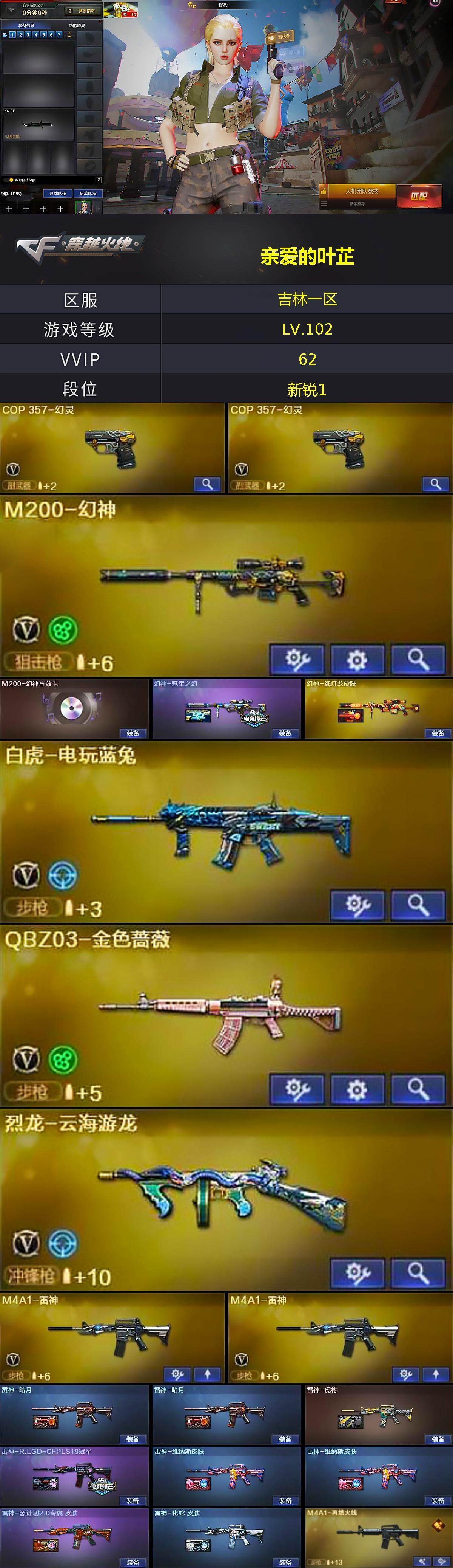 【1308】贝12110可排位-可二次【纯白无封号/哔哩哔哩名片】【吉林一区/63v/vip6】【幻神3件套/金狐套/次元之矛套/挑战九阶刷满】【m200-幻神/幻神音效卡/幻神-冠军之幻/幻神-纸灯龙皮肤】【cop357-幻灵2】【q03-金色蔷薇】【白虎-电玩兰兔】【m4a1-雷神2/雷神-动感音效卡/雷神-r.lgd-cfpls18冠军/雷神-维纳斯皮肤2/雷神-暗月2/雷神-虎将】【王者火魄】【barrett-毁灭/毁灭-星空/毁灭-虹光风暴 皮肤/毁灭耀金皮肤/毁灭-黑曼巴 皮肤】【ak47-火麒麟/火麒麟-百城/火麒麟-cfstar3/火麒麟-心动糖果/火麒麟-华夏之心/火麒麟-雷神/火麒麟-平天大圣】【m4a1-黑骑士2/黑骑士音效卡/m4a1-黑骑士-娜塔莉娅 皮肤/黑骑士-海王】【m4a1-黑龙-361】【无影-神兵利器】【黑武士-锦绣游龙】【awm-天龙/天龙-cfstar/天龙-能量核心】【barrett-极光/barrett-极光音效卡/极光-能量核心】【m4a1-千变-孔明皮肤】【烈龙-云海游龙】【迷你生化手蕾】【沙鹰-修罗/修罗-cfstar2/修罗-星空】【天神-动感闪耀】【麒麟刺2/麒麟刺-萌杀皮肤】【擎天/擎天-云海游龙音效卡/擎天-云海游龙】【屠龙/屠龙-动感闪耀/屠龙-秘银/屠龙-春桃 皮肤】【龙啸/龙啸-烈火龙威】【影豹/王者炽天使/王者影豹/王者凌霄/龙儿/暗夜-x/司雨/女战神/木兰/奇洋探员/云海玲珑/乔伊教练/修道士/兔囡囡/超能特工/兰-新年限定/灵狐-花神/萌儿/麻雀/青霞仙子/妲己/蜀雪/娟娟/潘多拉-x/斯沃特-x/救世主-x/铁骑荣耀/幻影/堕天使/复仇者】【scar light-像素/ak-47-猩红传说】【ak47-黑鲨/ak12-天启】【超新星-热带奇洋】【barrett-暗月传说3】【colt1911-小故障/usp-邪皇龙甲兽/柯尔特-萌杀/新usp-呛王排位奖励】【龙啸-热带奇洋/金刚伞-电玩红兔】【kac-圣炎切割者iii】【黑龙吞噬者/斯泰尔-巧克力】【雷神-小红/cop-旗袍/毁灭-孙三炮/海滩汪汪-芭蕾特/迷你裂空之翼/夺魂】【手蕾-云海游龙】【高爆手蕾-幻灵5/闪光丹-幻灵5/盐雾蛋-幻灵5】【手蕾-热带奇洋】【炫金修罗】【语音特效-云海游龙】【超级护目镜/烟雾保护头盔/闪光护目镜/超级对讲机/超级背包/防弹头盔5/防弹衣5/c4工具钳4/手蕾包4/防化服3】【截图展示段位不代表实际段位,如赛季更新等不/拒因素发生变化、时限道具不保证所剩时间】
