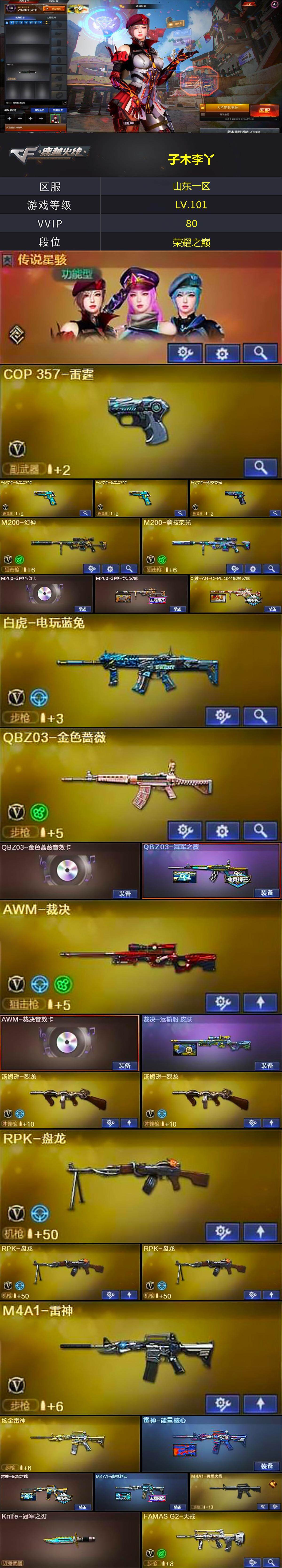 【1310】贝20416北部山东一区可排位可二次【山东一区/80v/vip4/1传说】【四防传说星骇/幻神三件套/裁决三件套/竞技荣光套/7手呛拉满/2把冠军之特/usp铃狮送福/跳跳鲨/10套雷/q三件套】【m200-幻神/m200-幻神音效卡/幻神-ag-cfpls17冠军 皮肤/m200-幻神-黄忠皮肤】【awm-裁决/awm-裁决音效卡/裁决-运输船 皮肤】【m200-竞技荣光】【星神-长生圣莲/famas g2-天戎/王者凌虎/王者冰锋/玄豹匕首】【knife-冠军之刃/黄金猫猫手套-白鲨】【柯尔特-冠军之特2/柯尔特-竞技荣光】【q03-金色蔷薇/q03-金色蔷薇音效卡/q03-冠军之薇】【m4a1-雷神/雷神-冠军之魄/m4a1-战神赵云/雷神-能量核心】【雷霆之契】【barrett-毁灭2/毁灭-冠军之怒/毁灭耀金皮肤】【ak47-火麒麟3/ak47-火麒麟音效卡/火麒麟-冠军之心/火麒麟-cfstar/火麒麟-心动糖果/火麒麟-战神关羽】【m4a1-黑骑士/黑骑士-冠军之势】【m4a1-黑龙/黑龙-能量核心】【hk417-朱雀】【无影-神兵利器】【黑武士-锦绣游龙】【awm-天龙/天龙-cfstar/awm-天龙-传奇白鲨/天龙-能量核心】【barrett-极光/极光-能量核心】【m4a1-千变】【汤姆逊-烈龙2】【rpk-盘龙3】【死亡之眼/迷你生化手蕾】【沙鹰-修罗2/修罗-cfstar2/修罗-能量核心】【沙鹰-天神/天神-动感闪耀】【麒麟刺】【擎天/擎天-竞技荣光】【屠龙2/屠龙-动感闪耀】【荣耀世冠-龙啸】【电竞教官-云悠悠/机械姬/暗夜-x/乔伊教练/超能特工/麻雀/潘多拉-x/斯沃特-x/影武者-x/幻影/堕天使/复仇者】【m4a1-玫瑰精灵】【白虎-电玩蓝兔/scar light-像素】【aa-12-雷霆】【新usp-呛王排位奖励】【斩神刀/迷你深渊冰龙】【激光毁灭者iii】【cat-刀锋/cop-旗袍/王者汪汪-芭蕾特/金色小号】【高爆手蕾-竞技荣光7/闪光丹-竞技荣光6/盐雾蛋-竞技荣光6】【高爆手蕾-雷霆王者/闪光丹-雷霆王者/盐雾蛋-雷霆王者】【炫金无影/炫金雷神/炫金骑士/炫金超新星】【透明头盔/透明护目镜/烟雾保护头盔/闪光护目镜/超级对讲机/防弹头盔2/防弹衣2/c4工具钳2/手蕾包2/防化服3】赛季更新段位可能更新/源武器多多皮肤多多底价处理机会难得手慢无2041622953