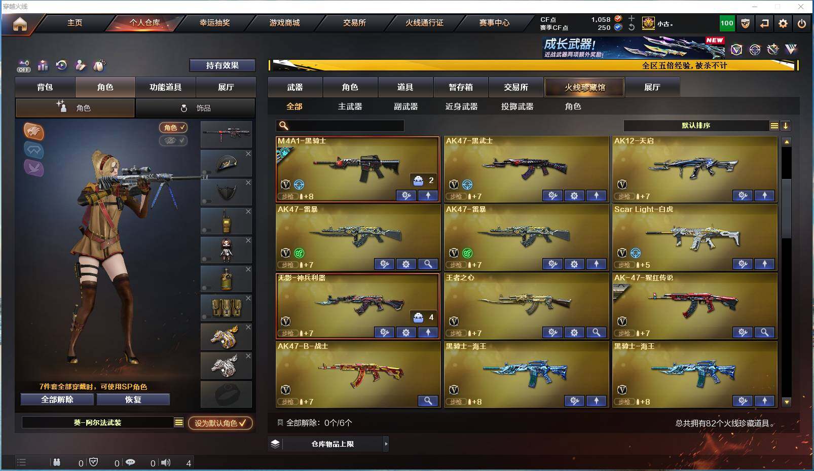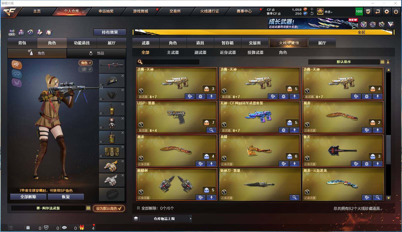 [14421958]【编号70380可秒换绑】【店长推荐极品生活号!!传说暗裔 7盘7烈】河南一区-80v-5王者-6炫金 【传说武器】:传说暗裔 【热门武器】:传说暗裔,scar light-白虎,死亡之眼,m4a1-黑骑士6,汤姆逊-烈龙7,rpk-盘龙7,加特林-炼狱,斯泰尔-蝴蝶,usp-雷暴,沙鹰-修罗3 【王者炫金武器】:炫金火麒麟,炫金骑士,炫金天龙3,炫金雷神 【音效卡】:m4a1-黑骑士音效卡,barrett-毁灭音效卡 【稀有皮肤】:火麒麟-华夏之心,毁灭-星空 【角色】:王者-葵-貂蝉,王者-魅影,王者玲珑-小乔,春,迷迭香,铁骑荣耀,青霞仙子 【人偶武器】:斯泰尔-蝴蝶,awm-灵狐-15周年嘉年华,迷你深渊冰龙,迷你艾比,迷你裂空之翼,夺魂,迷你牛牛,迷你生化手蕾2,深渊终结者手蕾,闪光丹-貂蝉,高爆手蕾-大乔 【暴走生化】:斯泰尔-蝴蝶,死亡之眼,超级对讲机 【挑战大师】:神圣爆裂者iii,机甲撕裂者iii,阐释者iii2,激光毁灭者iii3,vepr-12-金魔,激光毁灭者iii-白马银呛2,冰龙粉碎者-白马银呛 【英雄级武器】:ak47-雷暴2,usp-雷暴,斩神刀-雷暴,scar light-白虎,无影-神兵利器,m4a1-雷神2,m4a1-黑骑士6,rpk-盘龙7,加特林-炼狱,汤姆逊-烈龙7,ak47-火麒麟,ak47-黑武士,ak12-天启,barrett-毁灭,m4a1-千变,黑骑士-海王2,ak-47-猩红传说,ak47-b-常胜将军,沙鹰-天神4,沙鹰-修罗3,麒麟刺,擎天,龙啸,屠龙2,屠龙-云海游龙 【特殊呛械】:蝴蝶斯泰尔6烈龙,1白虎,6黑骑士,6烈龙,6盘龙,1炼狱,1蝴蝶斯泰尔 【稀有套装】:雷暴套