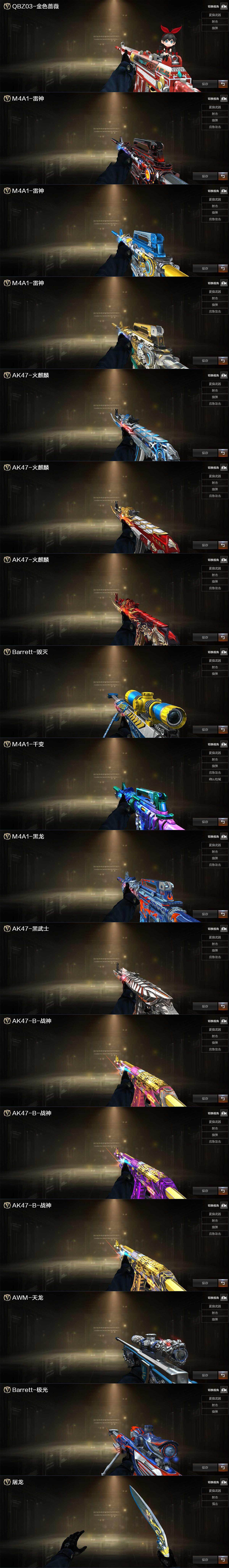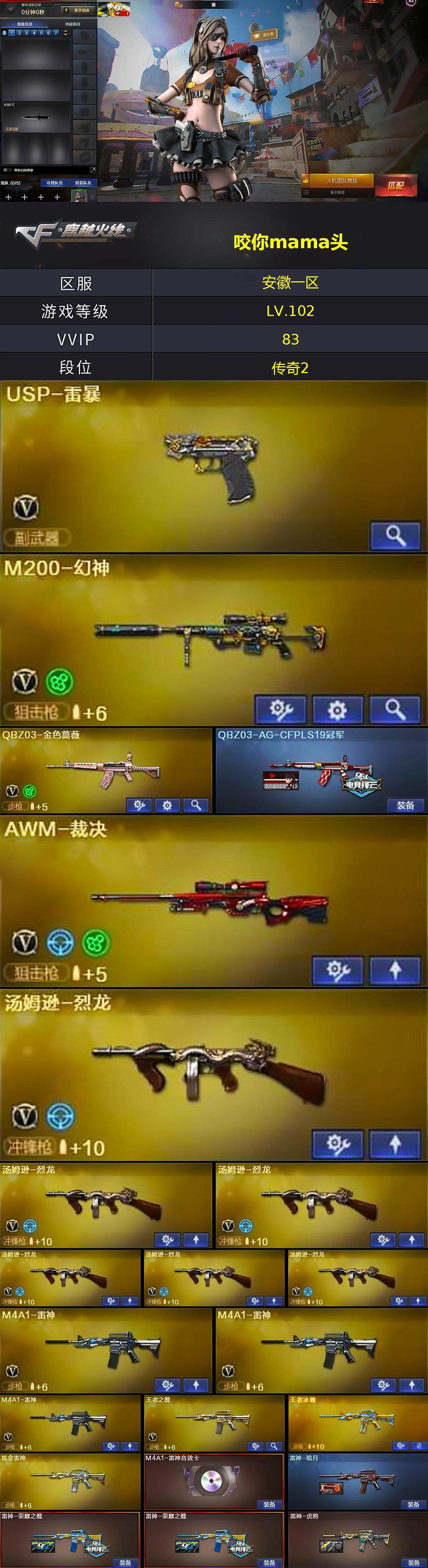 安徽一区-82v-7王者-6炫金 【热门武器】:q03-金色蔷薇,m200-幻神,死亡之眼,金色小号,m4a1-黑骑士,汤姆逊-烈龙6,加特林-炼狱2,usp-雷暴,沙鹰-修罗2 【王者炫金武器】:王者之城,超新星-悦享,王者之翼,王者之魄,炫金骑士3,炫金雷神,炫金毁灭,炫金天龙 【音