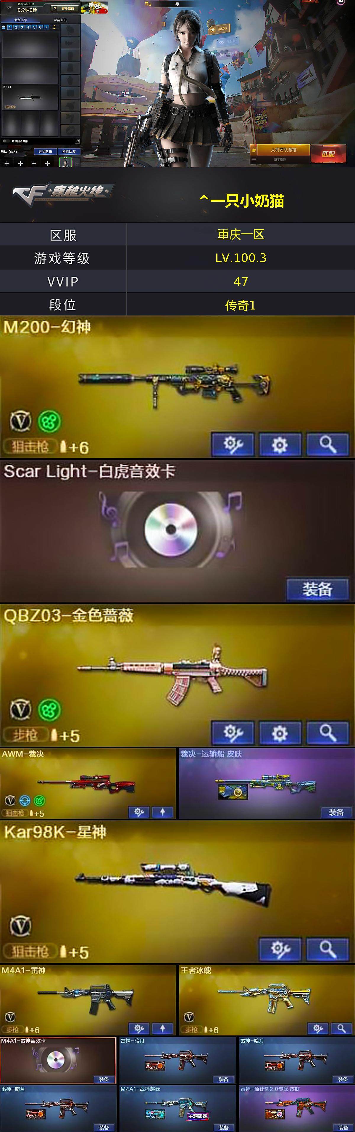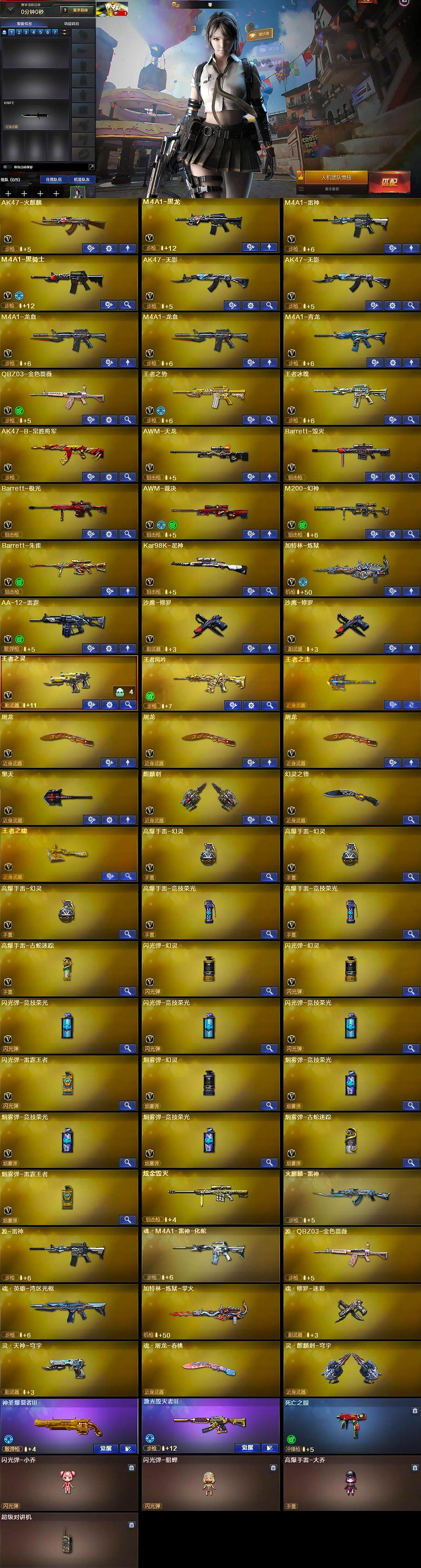 重庆一区-46v-14王者-1炫金 【热门武器】:q03-金色蔷薇,m4a1-青龙,m200-幻神,死亡之眼,kar98k-星神,m4a1-黑骑士,加特林-炼狱,羊驼玩偶,沙鹰-修罗2,金刚伞 【王者炫金武器】:王者凤吟,王者之击,炫金毁灭 【音效卡】:烈火-动感闪耀 音效卡,ak47-火麒麟