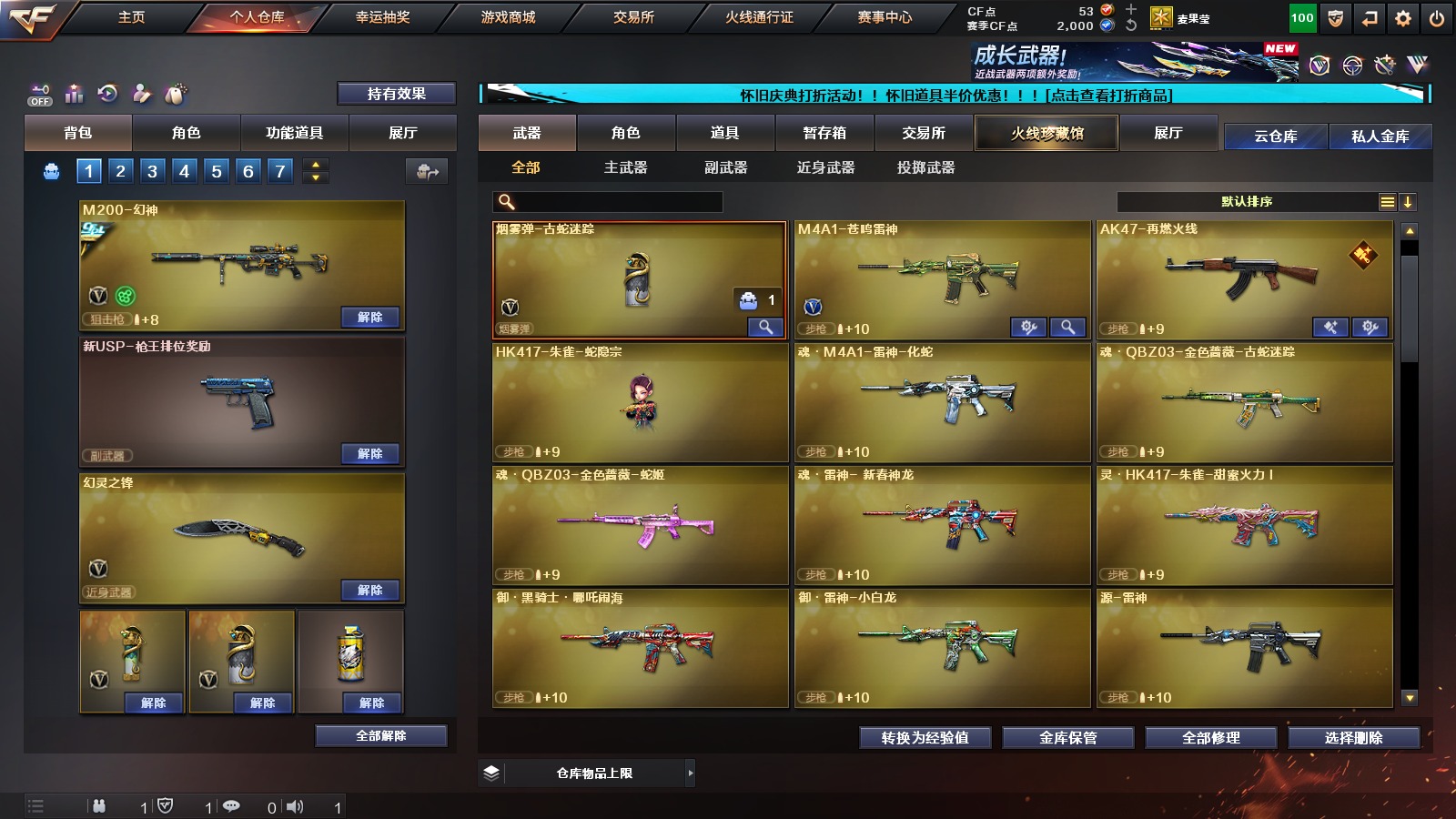 1传说角色 10v武器 可二次 可修改实名 【排位资格】:有 【v武器】:死神-雪域霜狐修罗-古蛇迷踪m200-幻神ak47-火麒麟ak47-黑鲨m4a1-雷神m4a1-黑骑士沙鹰-修罗沙鹰-天神幻灵之锋