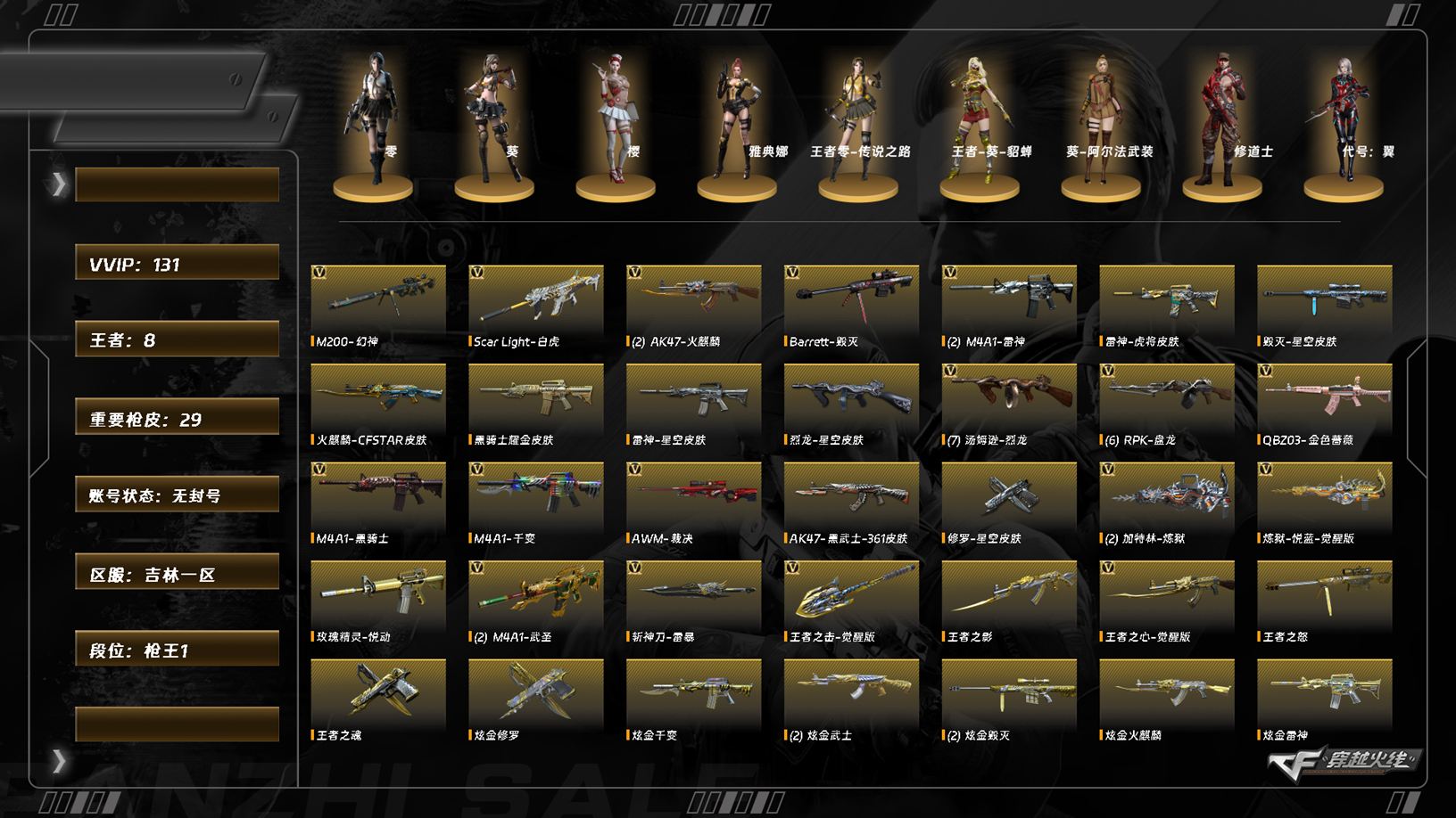 [14458141]lc7381,北部,吉林一区,可排位,131v,幻神,6盘龙,6烈龙,6修罗,q金色蔷薇,白虎,白虎百战金芒,云龙套装,q云龙,cop云龙,【四防角色,王者葵貂蝉,】,【角色】,葵,零,樱,零纪元,葵阿尔法武装,奇洋探员,乔伊教练,修道士,【小人呛,火麒麟音效卡,极光音效卡,黑骑士音效卡,碧霄极光音效卡,毁灭音效卡,炼狱百战金芒庆典舞曲音效卡,雷神音效卡,】,【呛皮】,雷神源计划,擎天秘银,黑骑士耀金,毁灭星空,雷神星空,王者蔷薇,王者之心,王者之影,王者之怒,王者之魂,王者之击,炫金武器,炫金火麒麟,炫金武士,炫金黑龙,炫金雷神,炫金骑士,炫金千变,炫金毁灭,炫金修罗,【小人呛,雷神精英刀锋,火麒麟零纪元,火麒麟灵狐,天龙曼陀罗,天龙乔伊教练,mk5炽火炎龙,baeertt云海玲珑,沙鹰炎龙灵狐者,cat猫锋,cop旗袍,】,永久ac,找回包赔