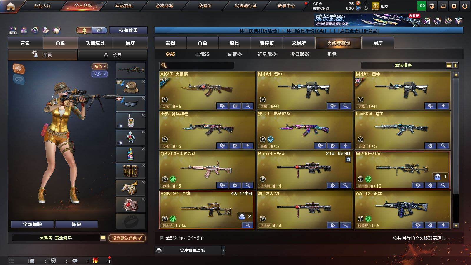 四川二区 vip6 11V 【M200幻神】【qbz03金色蔷薇】【火麒麟 雷神 无影神兵利器 黑武士锦绣游龙 机械迷城穹宇 源毁灭VI AA12雷霆】——【麒麟刺】——【热门武器/小人枪】【M4A1赤狱骑士 AK47竞魂无影】——【角色】【乔伊教练】
