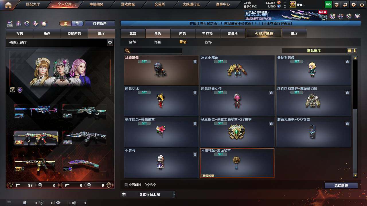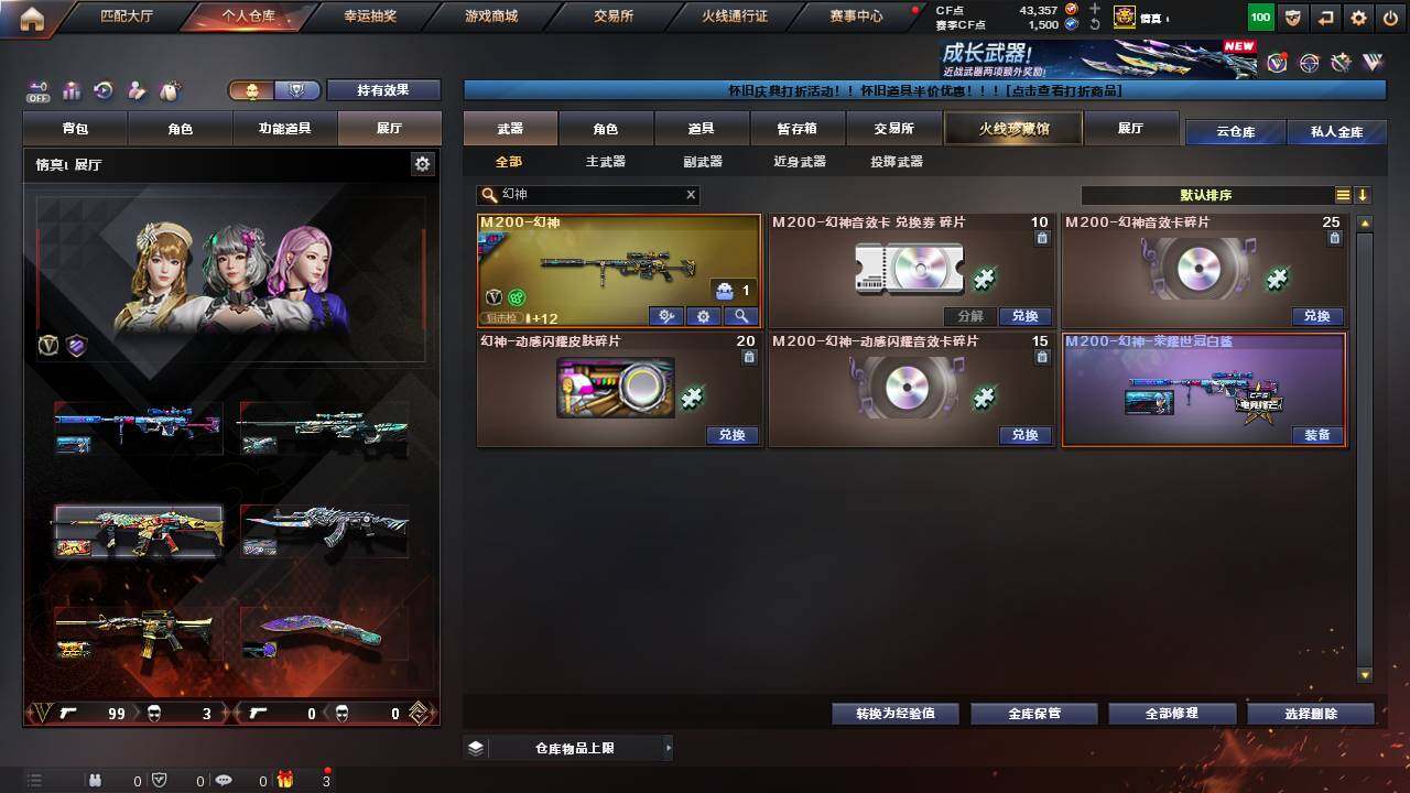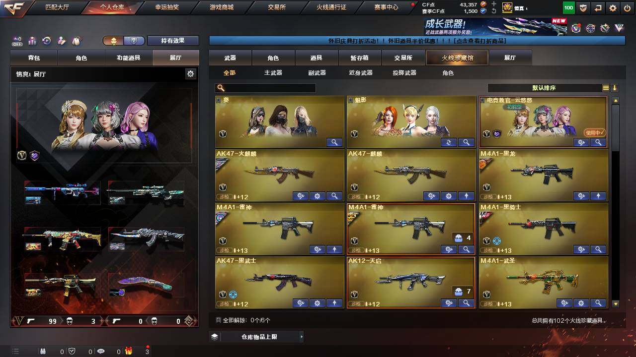 【1343】贝57149可排位-可二次【浙江一区/102v/vip6/赠送4.3万点券】【四防云悠悠/裁决三件套/竞技荣光套/武圣套/柯尔特-竞技荣光/usp-雷暴/cop-堕天神】【m200-幻神/m200-幻神-荣耀世冠白鲨/m200-竞技荣光/awm-裁决/awm-裁决音效卡/裁决-叶芒苍灵/裁决-胜者为王/裁决-运输船】【白虎-ag-cfpls20冠军】【q03-金色蔷薇/q03-金色蔷薇音效卡】【白虎-电玩蓝兔/hk417-朱雀-电竞之星】【m4a1-雷神2/雷神-cfs2019/雷神-机甲刑天皮肤/雷神-宇航兔皮肤/雷神-暗月】【glock18-武圣】【barrett-毁灭/毁灭-风暴/毁灭-虹光风暴,皮肤】【ak47-火麒麟/火麒麟-白虎/火麒麟-cfstar2/火麒麟-心动糖果/火麒麟-雷神/火麒麟-平天大圣】【m4a1-黑骑士/m4a1-黑骑士音效卡/黑骑士-冠军之势/黑骑士-ag-s4冠军典藏/m4a1-黑龙/m4a1-武圣】【王者森决/王者之怒/王者之心/王者之魂】【hk417-朱雀音效卡】【无影-神兵利器】【ak47-黑武士/黑武士-锦绣游龙】【天龙-cfstar】【barrett-极光/barrett-极光音效卡/极光-高能霹雳,皮肤】【汤姆逊-烈龙4/烈龙-云海游龙】【加特林-炼狱】【死亡之眼/迷你生化手蕾2】【沙鹰-修罗4/修罗-cfstar2/修罗-能量核心】【沙鹰-天神2/天神-动感闪耀】【麒麟刺】【擎天/擎天-云海游龙/擎天-竞技荣光】【屠龙3/屠龙-动感闪耀,音效卡/屠龙-动感闪耀/屠龙-春桃,皮肤】【龙啸/龙啸-烈火龙威】【电竞教官-云悠悠/职业选手/魅影/暗夜-x/樱-缤纷夏日/炽天使/卡塔琳娜/木兰/奇洋探员/云海玲珑/乔伊教练/修道士/兔囡囡/麻雀/紫霞/灵狐者-黄金海岸/雪莉杨/蜀雪/娟娟/潘多拉-x/斯沃特-x/影武者-x/铁骑荣耀/新娜塔莎】【aa-12-雷霆/ak47-机械迷城/ak12-天启】【超新星-热带奇洋】【colt1911-小故障/colt,1911-大黄蜂2/柯尔特-萌杀/cop,357-青龙/新usp-呛王排位奖励5】【龙啸-热带奇洋/斩神刀3/金刚伞-电玩红兔】【冰龙粉碎者-白马银呛3/阐释者iii】【斯泰尔-巧克力】【猫猫手套2/cop-旗袍】【高爆手蕾-竞技荣光/闪光丹-竞技荣光4/盐雾蛋-竞技荣光6】【手蕾-云海游龙】【闪光丹-神工天巧】【高爆手蕾-幻灵/闪光丹-幻灵】【手蕾-热带奇洋】【炫金超新星】【语音特效-云海游龙】【透明头盔/透明护目镜/烟雾保护头盔/闪光护目镜2/超级对讲机/超级背包/炫彩背包/防弹头盔6/防弹衣6/c4工具钳5/手蕾包5/防化服4】 【稀有套装】:裁决三件套,雷神三件套,毁灭三件套,武圣套,竞技荣光套