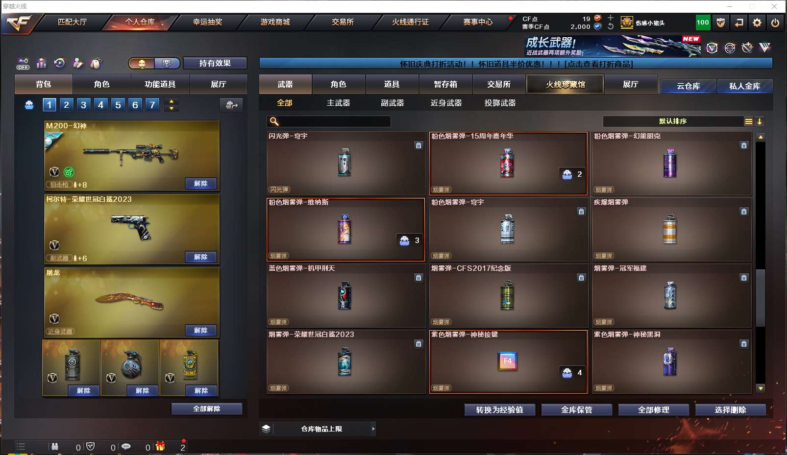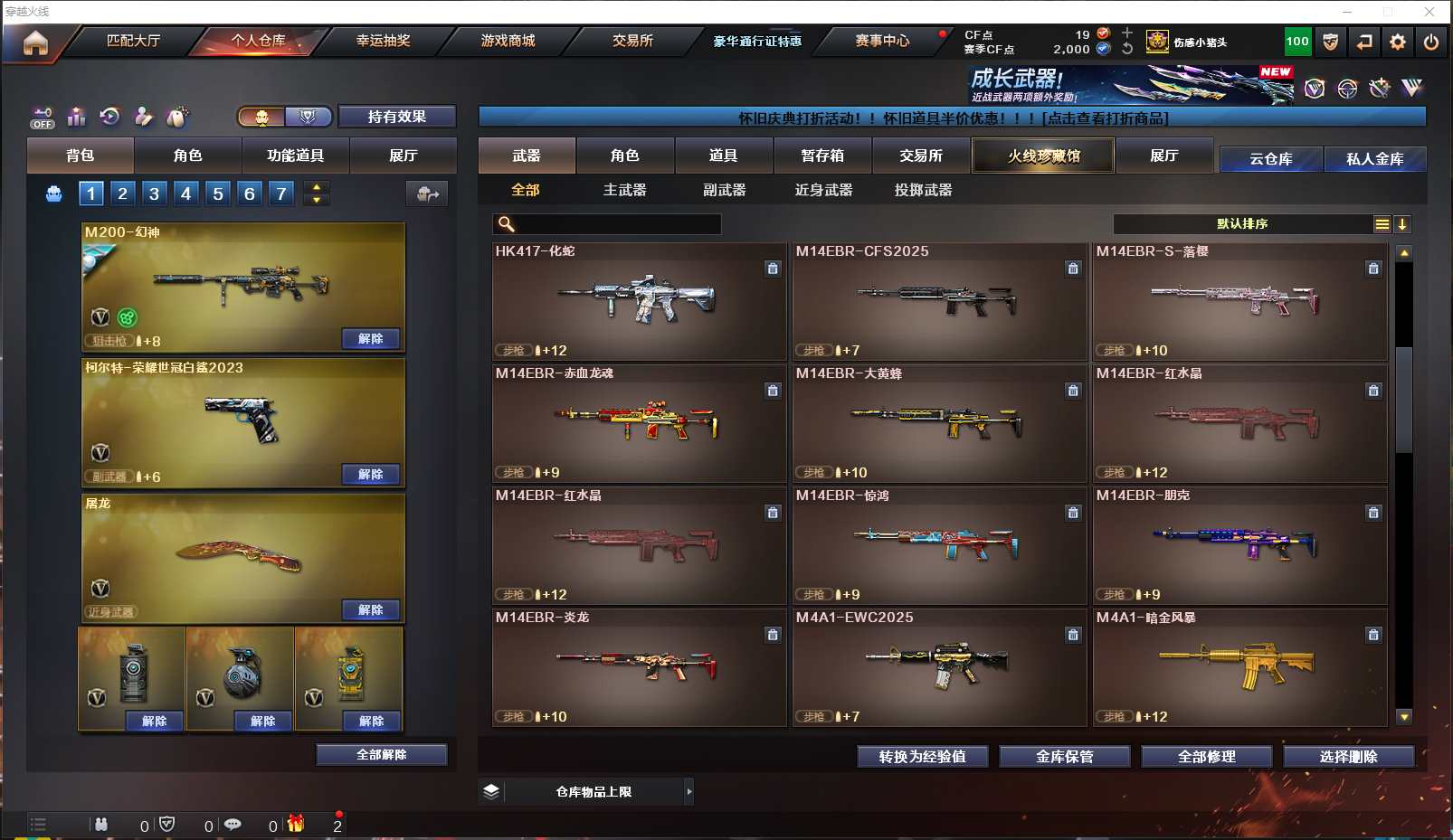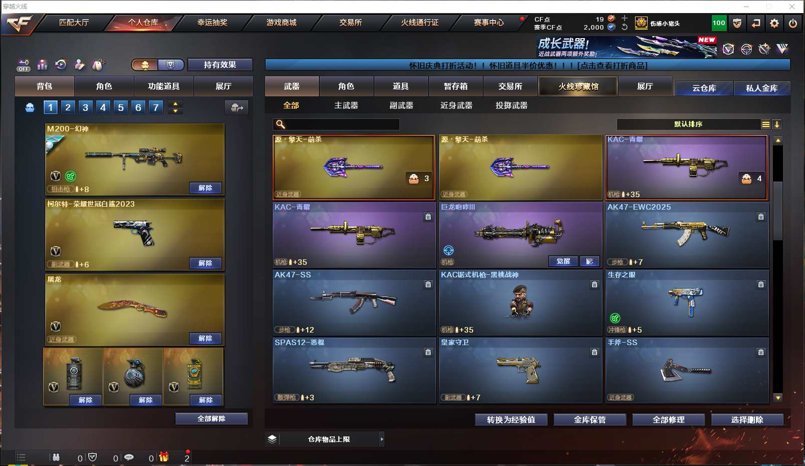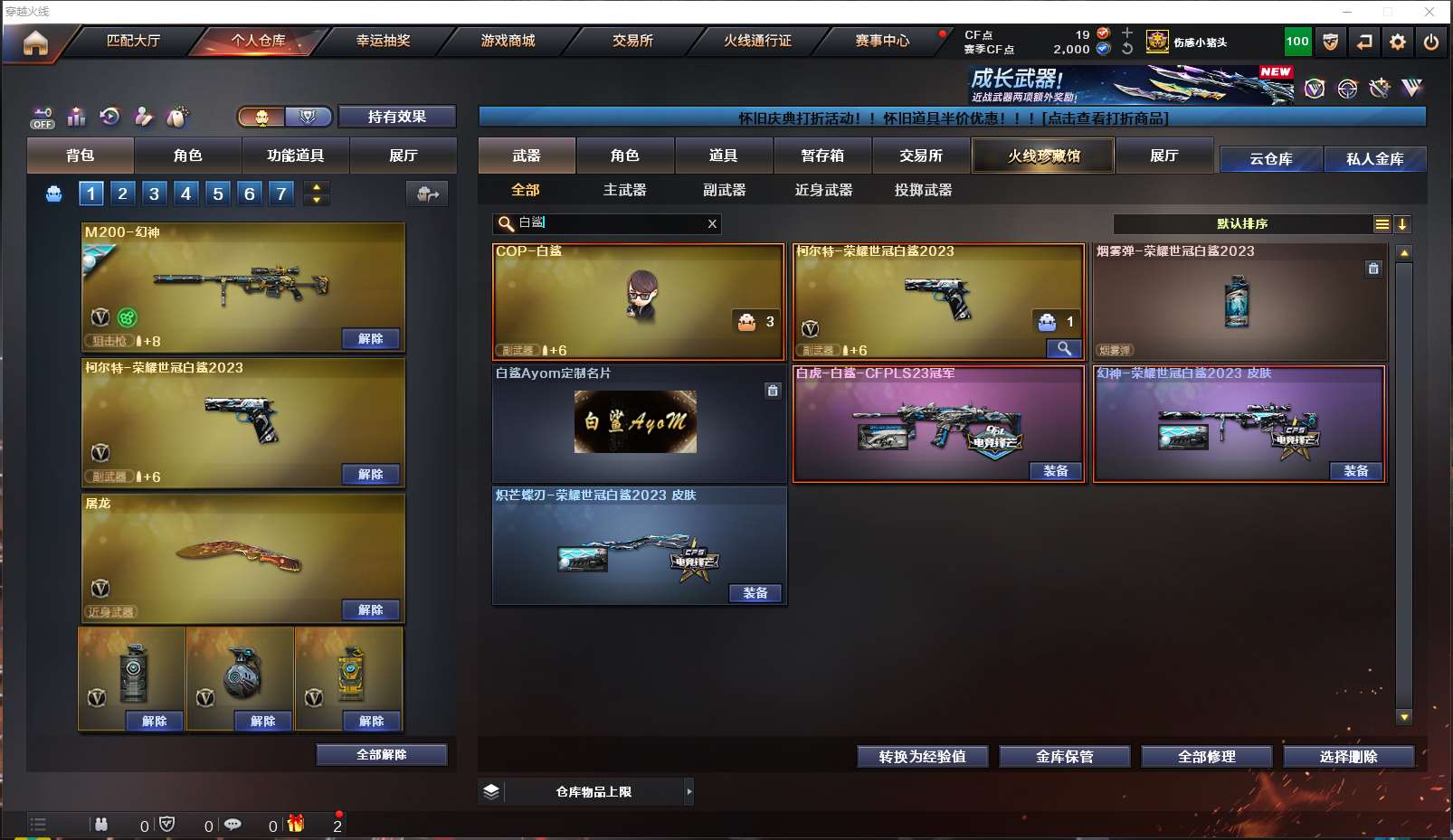 g2【找回包赔】【北京一区/35V/vip1】【M200-幻神/幻神-荣耀世冠白鲨2023 皮肤】【Kar98K-星神/星神-漫游】【炽芒蝶刃-荣耀世冠白鲨2023 皮肤】【柯尔特-荣耀世冠白鲨2023】【Scar Light-白虎】【QBZ-03-王者蔷薇/QBZ03-巅峰荣耀皮肤】【M4A1-雷神/雷神-荣耀之魄】【Barrett-毁灭/毁灭-星空】【AK47-火麒麟/火麒麟-CFSTAR2】【M4A1-黑骑士/M4A1-黑骑士音效卡/黑骑士耀金皮肤】【无影-神兵利器】【AWM-天龙/天龙-CFSTAR】【沙鹰-修罗2/修罗-CFSTAR】【沙鹰-天神2】【麒麟刺】【屠龙】【龙啸】【龙儿-小淘气/暗夜-X/兰-海滩派对/女战神/木兰/乔伊教练/修道士/潘多拉-X/斯沃特-X/铁骑荣耀/新娜塔莎/复仇者】【Barrett-朱雀】【Colt 1911-大黄蜂3/新USP-枪王排位奖励4】【轻型军用手斧-镜】【COP-白鲨】【王者之心/王者之锋】【高爆手雷-雷暴/闪光弹-雷暴/烟雾弹-雷暴】【高爆手雷-雷霆/闪光弹-雷霆/烟雾弹-雷霆】【闪光弹-雷霆王者/烟雾弹-雷霆王者】【烟雾弹-荣耀世冠白鲨2023】【炫金骑士】【烟雾保护头盔/闪光护目镜/超级对讲机/超级背包/炫彩背包/防弹头盔6/防弹衣6/C4工具钳6/手雷包6/防化服3】