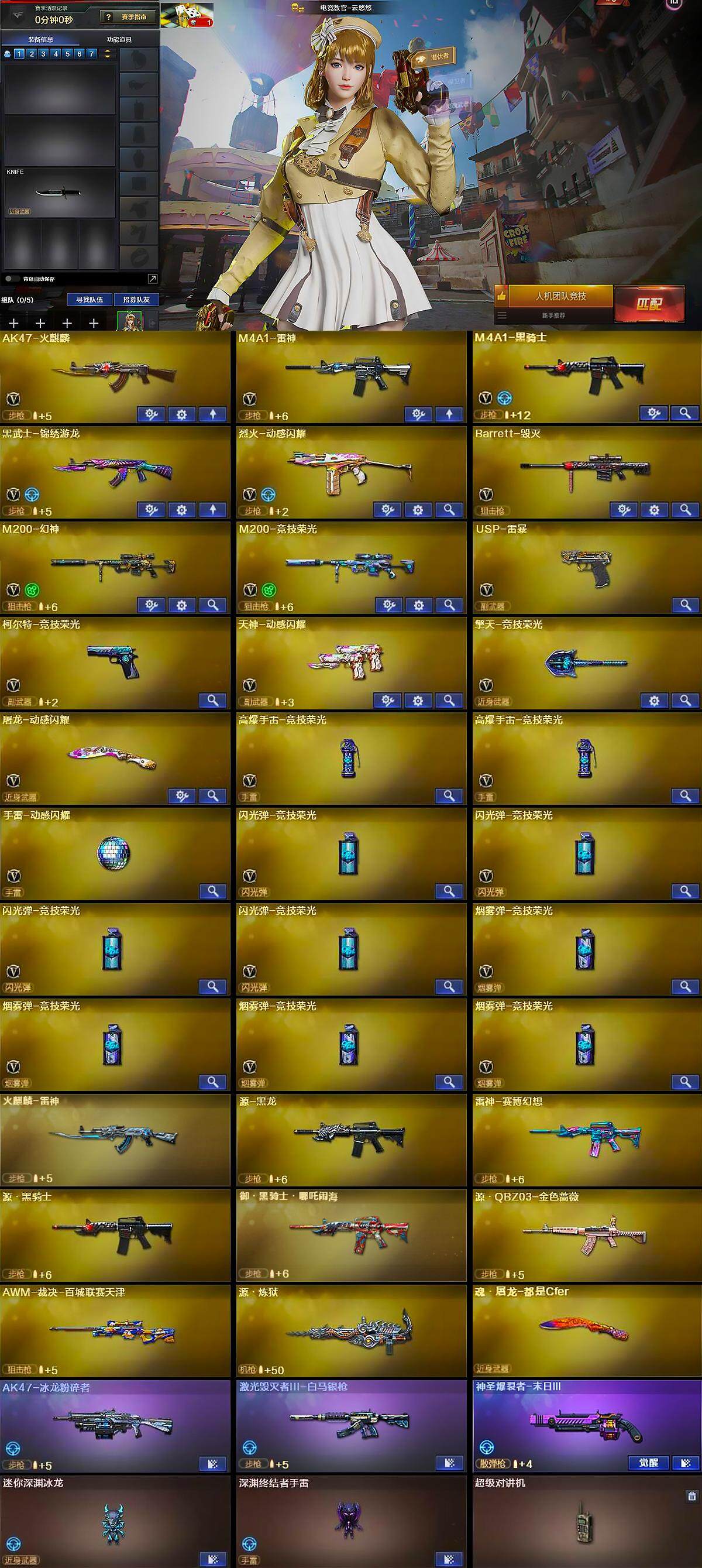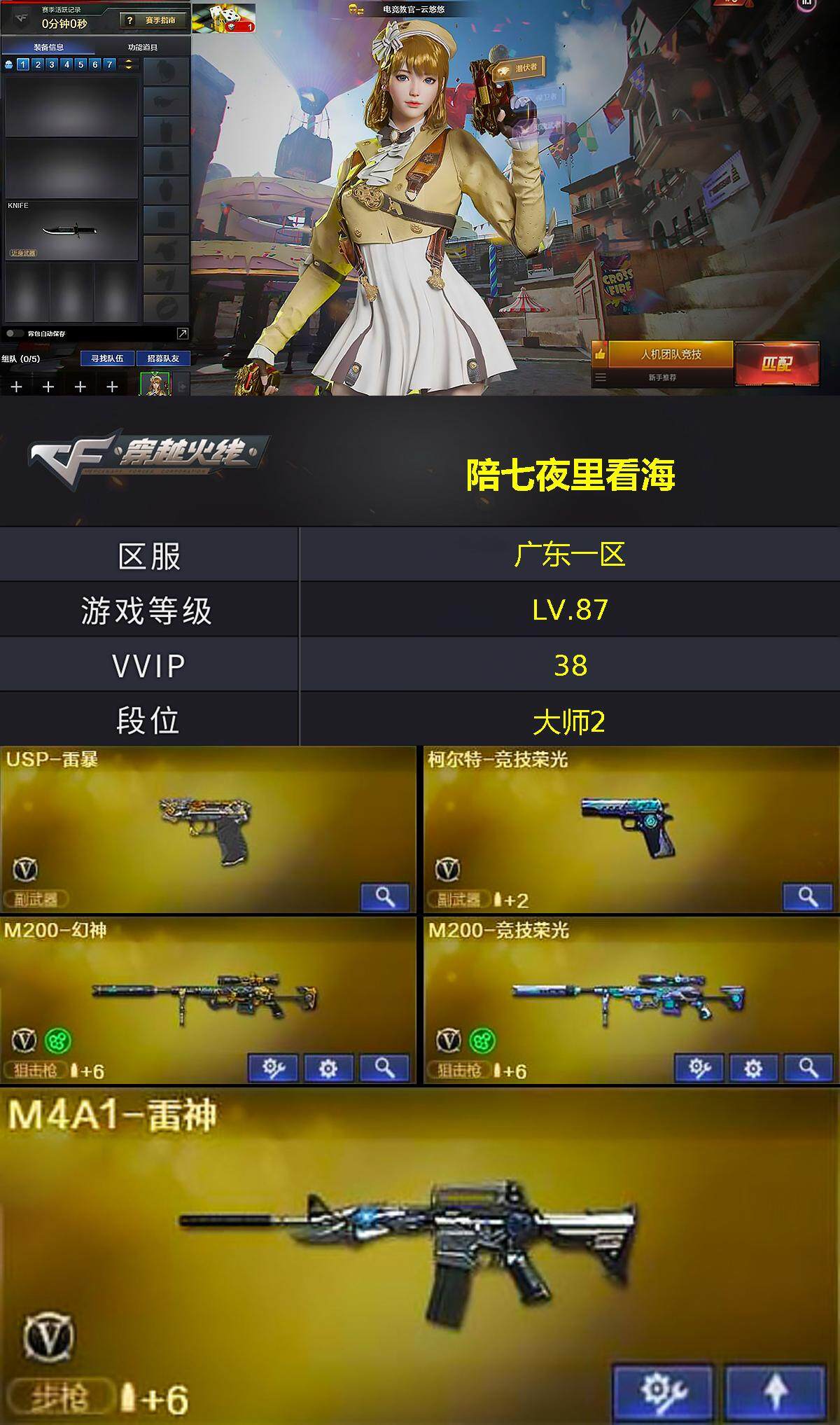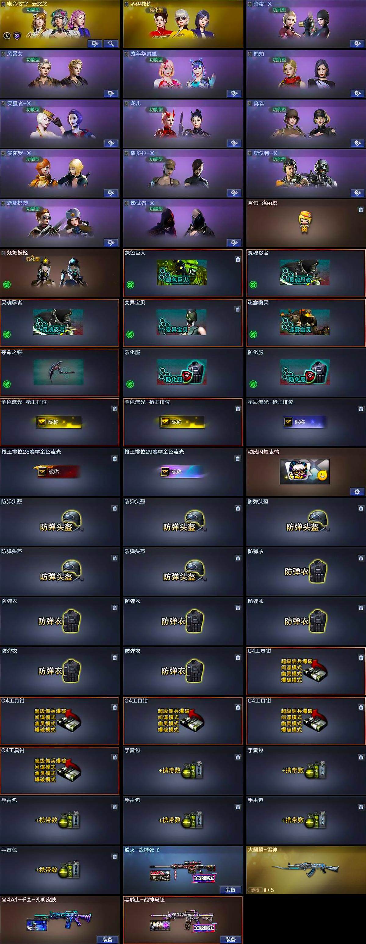 [14505311]广东一区-26v-0王者-0炫金 【热门武器】:m200-幻神,m200-竞技荣光,m4a1-黑骑士,usp-雷暴 【皮肤】:火麒麟-雷神,毁灭-战神张飞,m4a1-千变-孔明皮肤,黑骑士-战神马超 【角色】:电竞教官-云悠悠,乔伊教练,暗夜-x,风暴女,嘉年华灵狐,娟娟,灵狐者-x,龙儿,麻雀,曼陀罗-x,潘多拉-x,斯沃特-x,新娜塔莎,影武者-x 【人偶武器】:迷你深渊冰龙,深渊终结者手蕾 【暴走生化】:超级对讲机 【挑战大师】:ak47-冰龙粉碎者,激光毁灭者iii-白马银呛,神圣爆裂者-末日iii 【英雄级武器】:ak47-火麒麟,m4a1-雷神,m4a1-黑骑士,黑武士-锦绣游龙,烈火-动感闪耀,barrett-毁灭,m200-幻神,m200-竞技荣光,usp-雷暴,柯尔特-竞技荣光,天神-动感闪耀,擎天-竞技荣光,屠龙-动感闪耀,高爆手蕾-竞技荣光2,手蕾-动感闪耀,闪光丹-竞技荣光4,盐雾蛋-竞技荣光4 【道具】:背包-洛丽塔,妩媚妖姬,绿色巨人,灵魂忍者2,变异宝贝,迷雾幽灵,夺命之镰,防化服2,金色流光-呛王排位2,星辰流光-呛王排位,呛王排位28赛季金色流光,呛王排位29赛季金色流光,动感闪耀表情,防弹头盔5,防弹衣6,c4工具钳5,手蕾包6 【特殊呛械】:1黑骑士