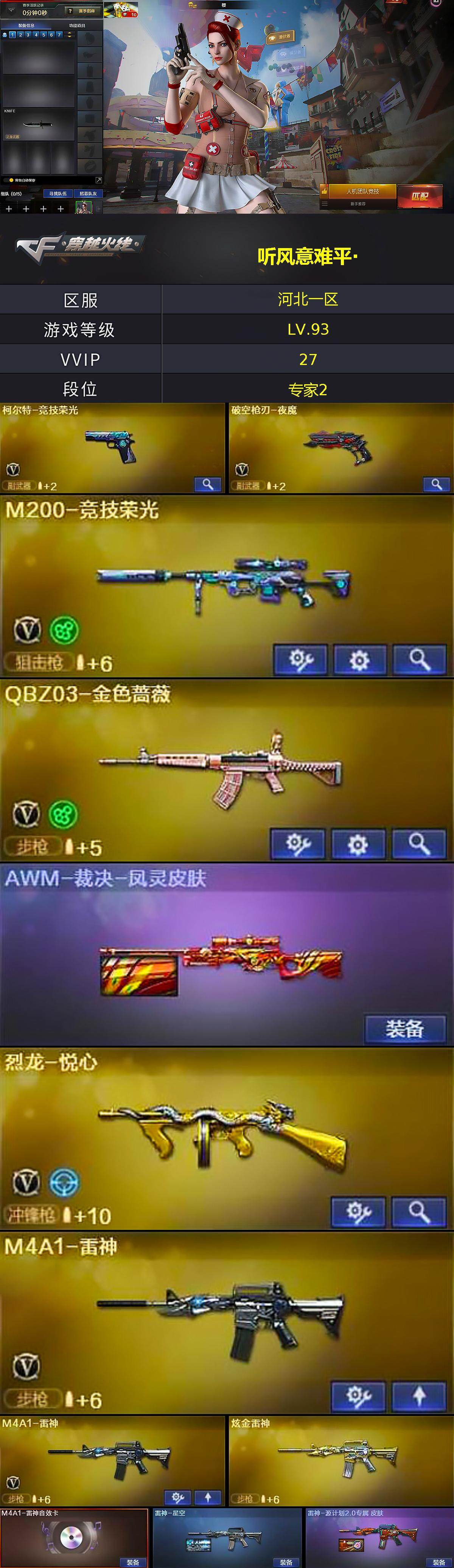 【1347】贝32988北部河北一区可排位可二次【河北一区/27v/vip4】【纯白无封号/竞技荣光套/雷神三件套】【m200-竞技荣光】【王者之幻】【柯尔特-竞技荣光】【q03-金色蔷薇】【m4a1-雷神2/m4a1-雷神音效卡/雷神-星空】【破空呛刃-夜魔】【ak47-火麒麟/火麒麟-cfstar】【m4a1-黑骑士/黑骑士-伏羲】【黑武士-锦绣游龙】【m4a1-千变-孔明皮肤】【烈龙-悦心】【沙鹰-修罗2/修罗-能量核心】【擎天-竞技荣光】【屠龙-秘银】【龙啸/龙啸-烈火龙威】【电竞教官-云悠悠/修道士/妲己/影武者-x/新娜塔莎/堕天使】【scar light-像素/ak-47-猩红传说】【colt1911-小故障/新usp-呛王排位奖励4】【斩神刀】【神圣爆裂者-末日iii/激光毁灭者iii/冰龙粉碎者-白马银呛】【斯泰尔-巧克力/轻型军用手斧-镜】【猫猫手套/m4a1-雷神-精英刀锋/cop-旗袍/m37-葵/夺魂】【高爆手蕾-竞技荣光3/闪光丹-竞技荣光3/盐雾蛋-竞技荣光3】【闪光丹-雷霆王者】【炫金雷神】【闪光护目镜/防弹头盔/防弹衣/c4工具钳/手蕾包3/防化服3】截图展示段位不代表实际段位,如赛季更新等不/拒因素发生变化、时限道具不保证所剩时间。标题未写送点卷默认不送