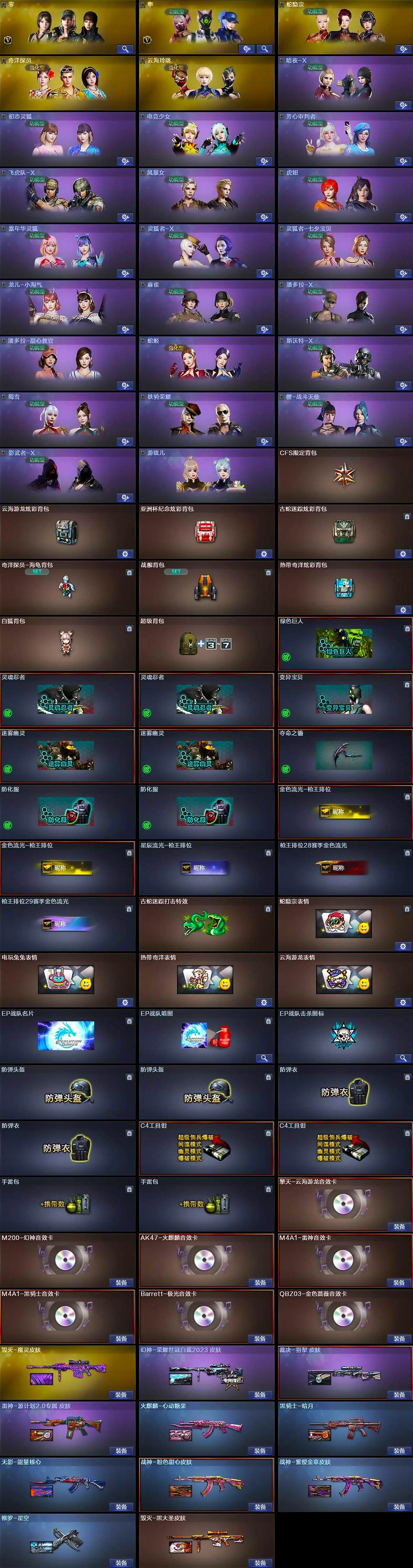 广西一区-2v-0王者-0炫金 【角色】:零,隼,蛇隐宗,奇洋探员,云海玲珑,暗夜-x,初恋灵狐,电竞少女,芳心审判者,飞虎队-x,风暴女,虎妞,嘉年华灵狐,0号玩家,灵狐者-x,灵狐者-七夕宝贝,龙儿-小淘气,麻雀,潘多拉-x,潘多拉-甜心教官,蛇姬,斯沃特-x,蜀雪,铁骑荣耀,兔囡囡,樱-战斗天使,影武者-x,游珑儿 【特殊呛械】: