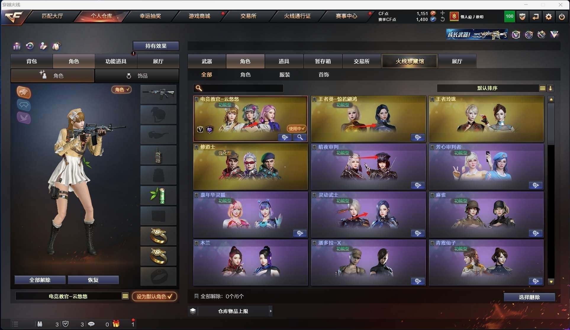 重庆一区62v【王者幻神柯尔特冠军之特usp雷暴】【m200竞技荣光套装电竞教官云悠悠】【王者白虎】【qbz03金色蔷薇冠军之薇皮肤】【3盘龙4炼狱3烈龙炼狱迷你小钢】【雷神雷神音效卡荣耀之魄皮肤】【毁灭毁灭音效卡】【黑骑士黑骑士音效卡】【王者冰魄 王者之翼 王者之烈】【烈火 黑鲨 火麒麟 无影 黑龙 青龙 黑骑士海王 玫瑰精灵 无影神兵利器 黑武士 黑武士锦绣游龙 天龙 极光 裁决 】——【热门武器/小人呛】【炼狱迷你小钢 斯泰尔蝴蝶 金钢伞 】——【柯尔特冠军之特 usp雷暴 柯尔特竞技荣光 修罗4】——【擎天竞技荣光 屠龙 】——【竞技荣光投掷武器套装3】——【角色】【4防王者葵惊若翩鸿】【电竞教官云悠悠】