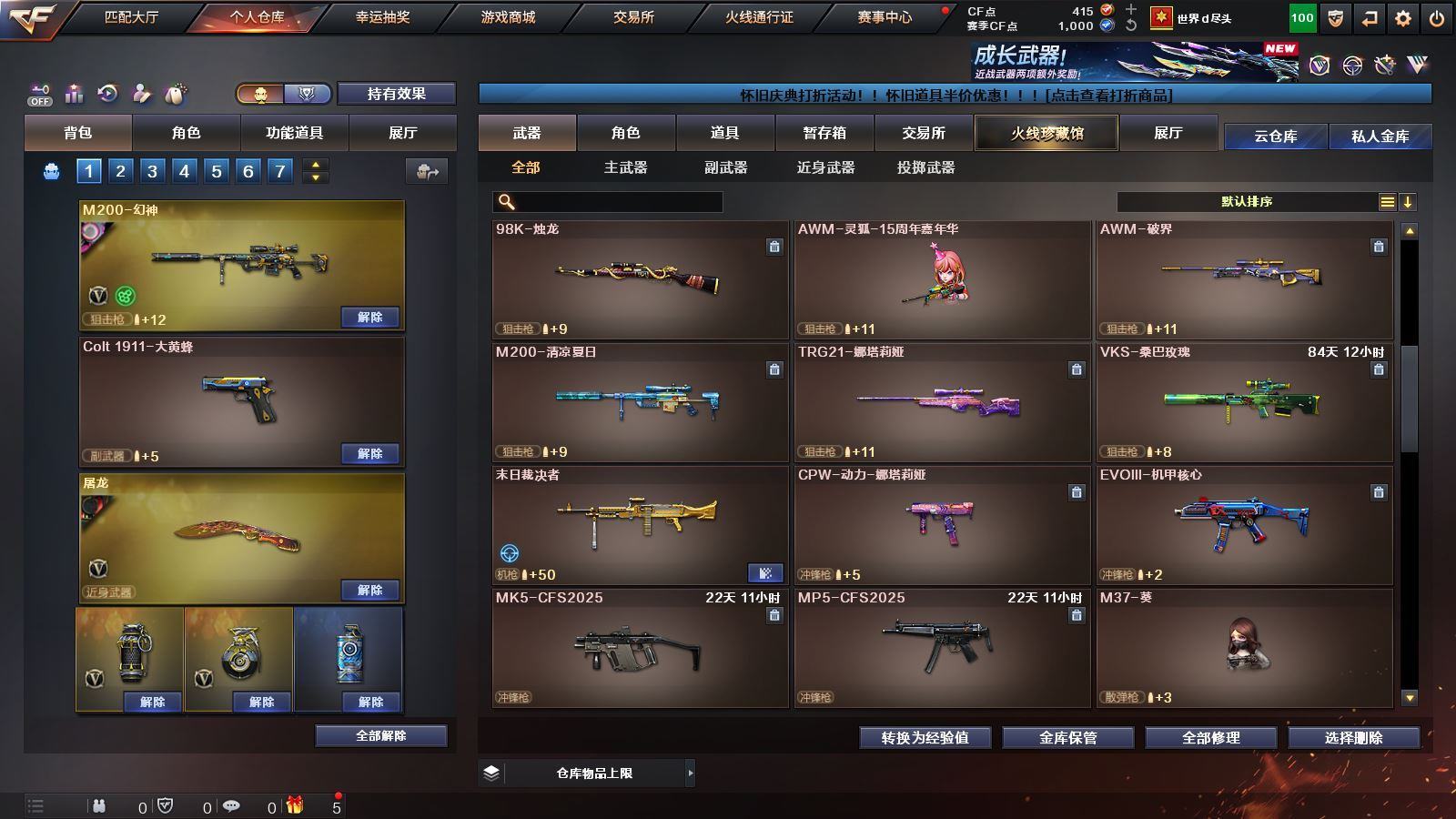 黑龙江区 vip5 25V 【裁决三件套!!!】【M200幻神宠儿皮肤】【qbz03金色蔷薇CFPLS19冠军皮肤】【裁决裁决音效卡巅峰荣耀皮肤】【荣耀世冠火麒麟】【雷神 黑骑士 黑武士锦绣游龙 机械迷城穹宇 毁灭 王者森决 王者霜心】——【沙鹰修罗2】——【屠龙 擎天 丛林匕首玄豹】——【雷暴投掷武器套装2 玄豹投掷武器套装】——【热门武器/小人枪】【M4A1赤狱骑士 M4A1再燃火线】——【角色】【葵 零纪元 战地猎狐】