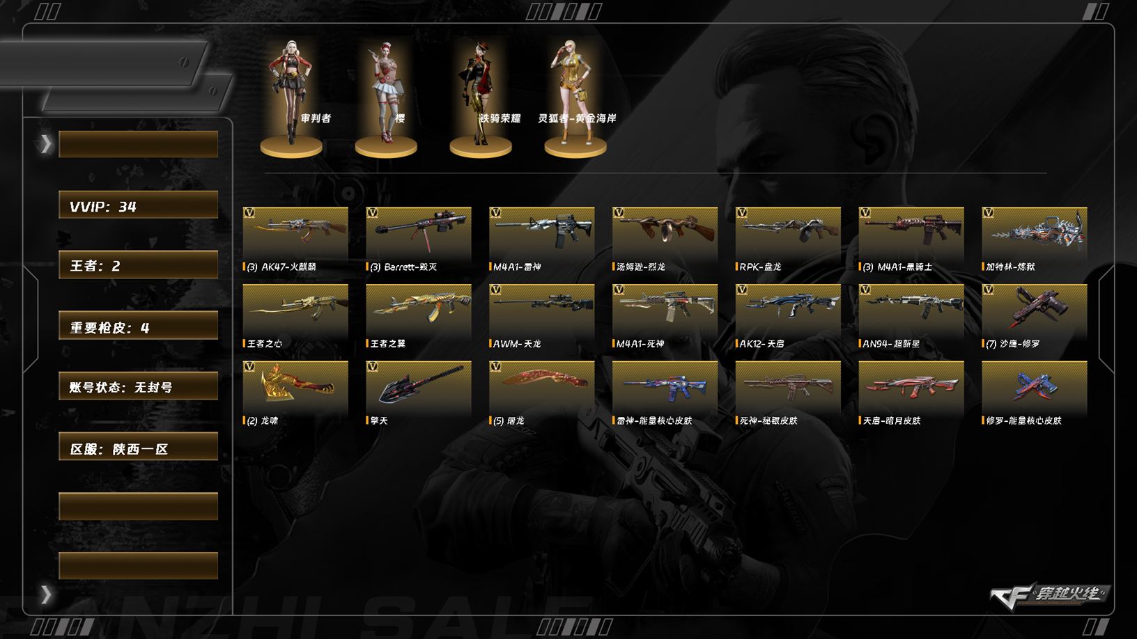 7196,西部,陕西一区,可排位,34v,6修罗,火麒麟,雷神,黑骑士,毁灭,天龙,【角色】,审判者,樱,【王者武器】,王者之心,王者之翼,永久ac,钱包无法注销,找回包赔