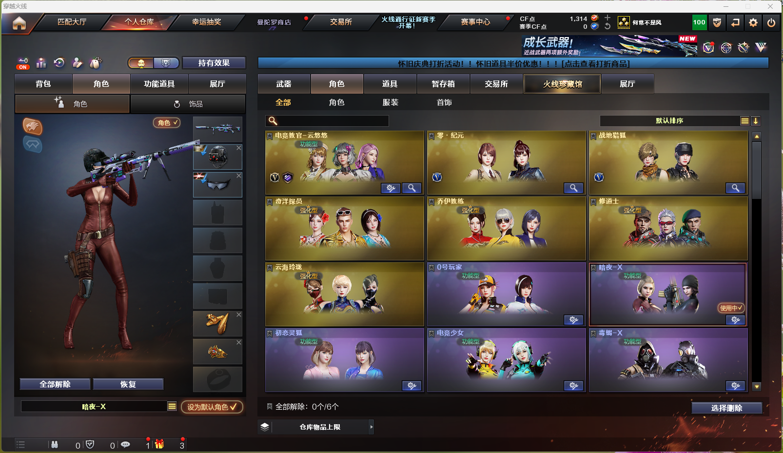 【南部战区 江西一区 37v】 竞技荣光套 角色 电竞教官-云悠悠 零·纪元 m4a1-雷神 黑武士-锦绣游龙 机械迷城-穹宇 m200-竞技荣光 源-毁灭v 柯尔特-竞技荣光 擎天-竞技荣光 龙啸-烈火龙威 高爆手蕾-竞技荣光 闪光丹-竞技荣光 盐雾蛋-竞技荣光