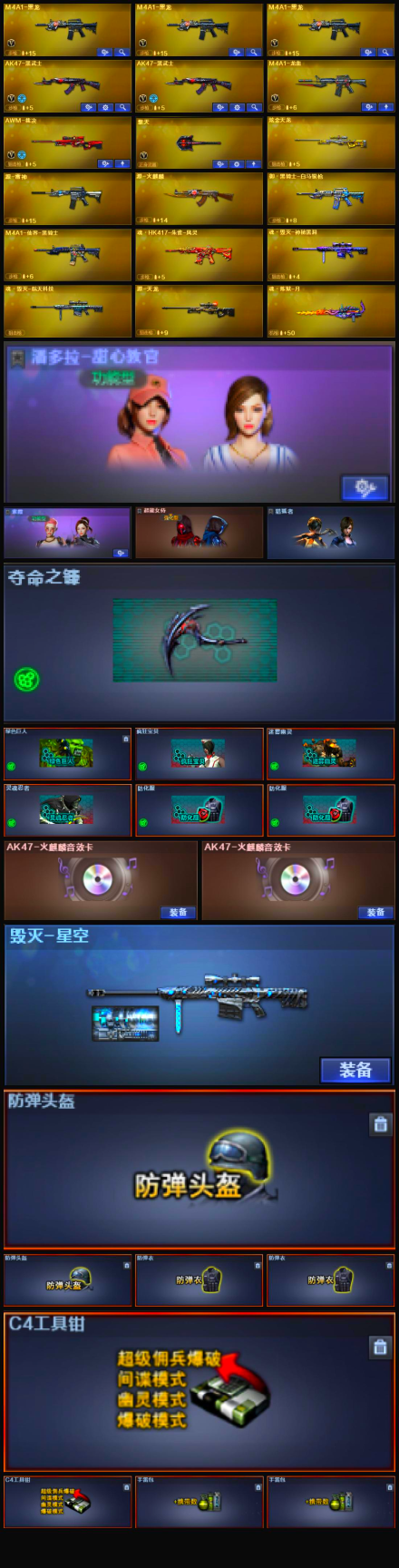 【等级】42【区服】陕西一区【vip】1【段位】新锐1【英雄武器】8【炫金级武器】炫金天龙【英雄级武器】m4a1-黑龙 m4a1-黑龙 awm-裁决 ak47-黑武士 m4a1-黑龙 m4a1-龙血 擎天 ak47-黑武士【通用级角色】紫霞 星光【通用级武器】魂·龙啸-醒狮 源 麒麟刺-掌火【强化级角色】超能女侍【普通武器】cf-05-丛林 内盖夫ng7 hk417-化蛇 m2