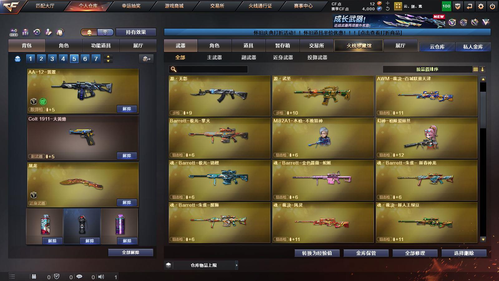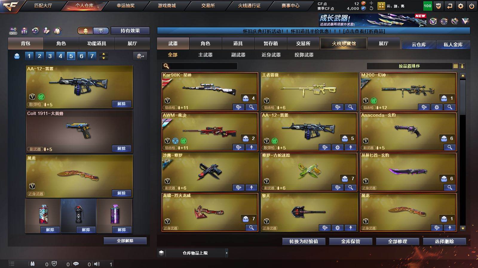 广西一区 vip5 36V【星神3三件套!!!】【 裁决三件套!!!】【传说武器!!!】【M200幻神电流骇客皮肤】【98k星神星神音效卡枪娘默皮肤】【裁决裁决音效卡流光秘银皮肤】【传说辉光】【王者凌虎 王者玄武 王者蔷薇】【玄豹套装】【火麒麟枪娘皮肤】】【千变 黑骑士海王 穹宇金色蔷薇古蛇迷踪 黑武士锦绣游花 aa12雷霆】——【玄豹 沙鹰修罗 修罗古蛇迷踪】——【丛林匕首玄豹 屠龙 擎天 龙啸烈火龙威】——【玄豹投掷套装】——【热门武器/小人枪】【朱雀蛇隐宗 幻神枪娘爱丽丝 水枪不败狙神 异变清道夫蛇影双骄】【修罗 修罗古蛇迷踪 玄豹】——【角色】【关小雨 枪娘樱 玄豹】【蛇隐宗】