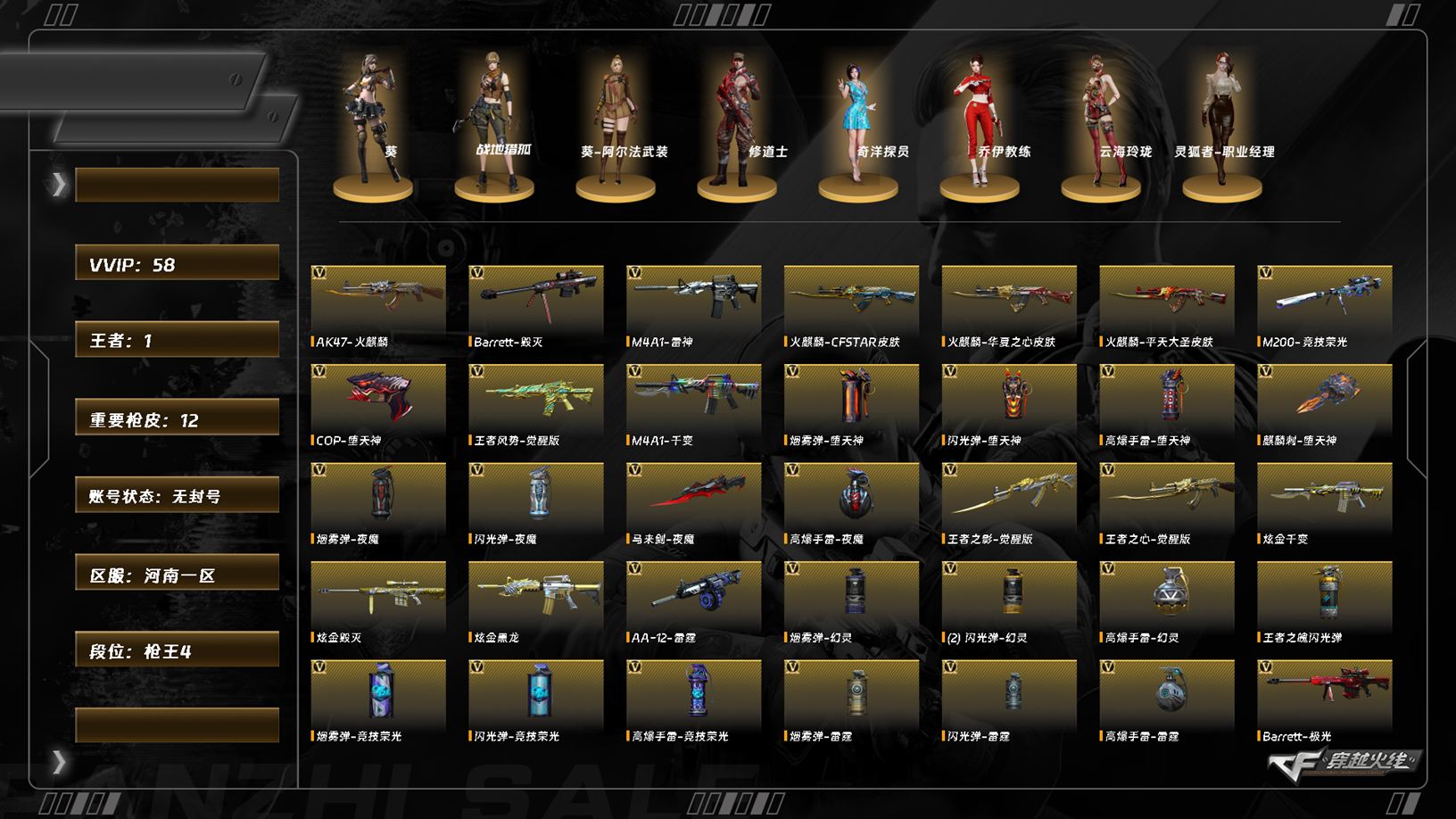 7597/北部/河南一区/可排位/57v/200竞技荣光/火麒麟/雷神/无影神兵利器/黑武士锦绣游龙/机械迷城穹宇/朱雀电竞之星/炼狱百战金芒/cop堕天神/【四防角色/灵狐者职业经理/】/葵/零纪元/战地猎狐/幻面灵狐/葵阿尔法武装/奇洋探员/乔伊教练/修道士/云海玲珑/【音效卡/碧霄极光