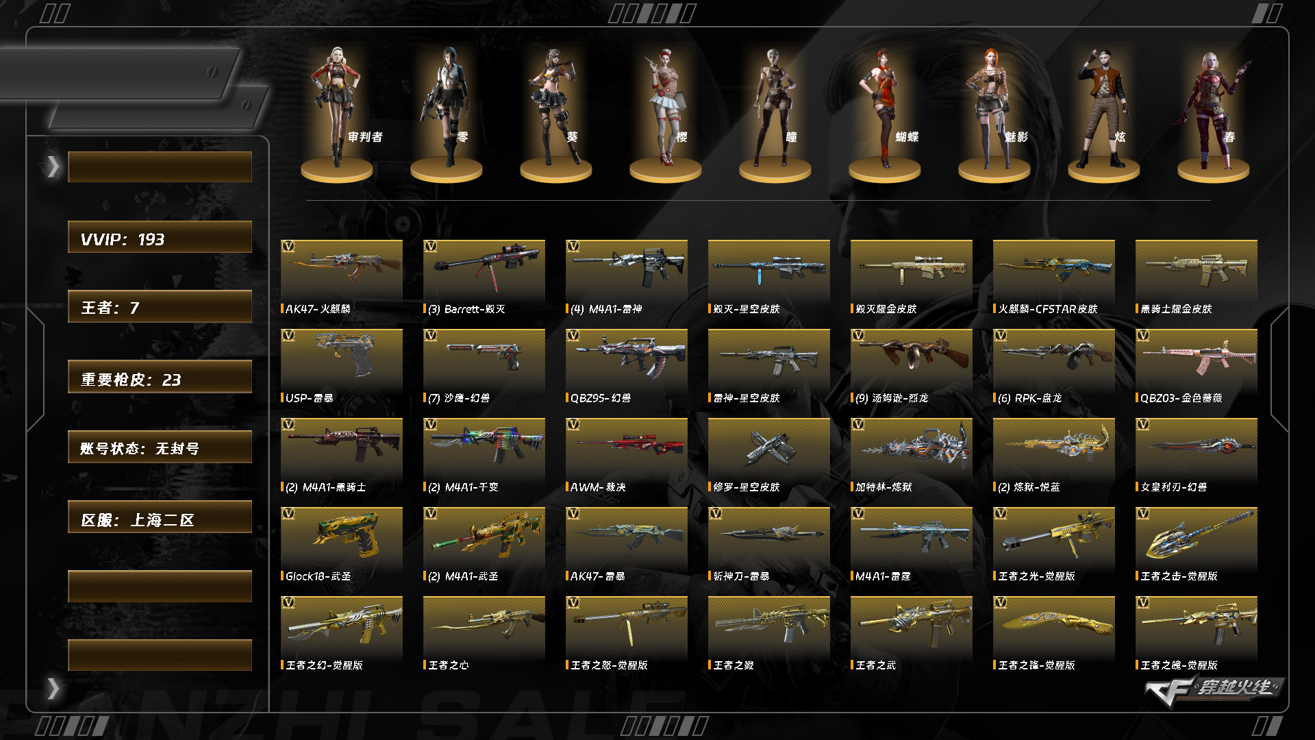 7608/东部/上海二区/可排位/193v/6盘龙/6烈龙/斯泰尔蝴蝶/6修罗/蝴蝶套/裁决/q金色蔷薇/cop雷霆/cop旗袍/usp雷暴/毁灭音效卡/火麒麟音效卡/37葵/毁灭/极光/天龙/雷神/死神/黑龙/千变/黑骑士/武圣/猎神/玫瑰精灵/火麒麟/无影/黑鲨/黑武士/超新星/天神