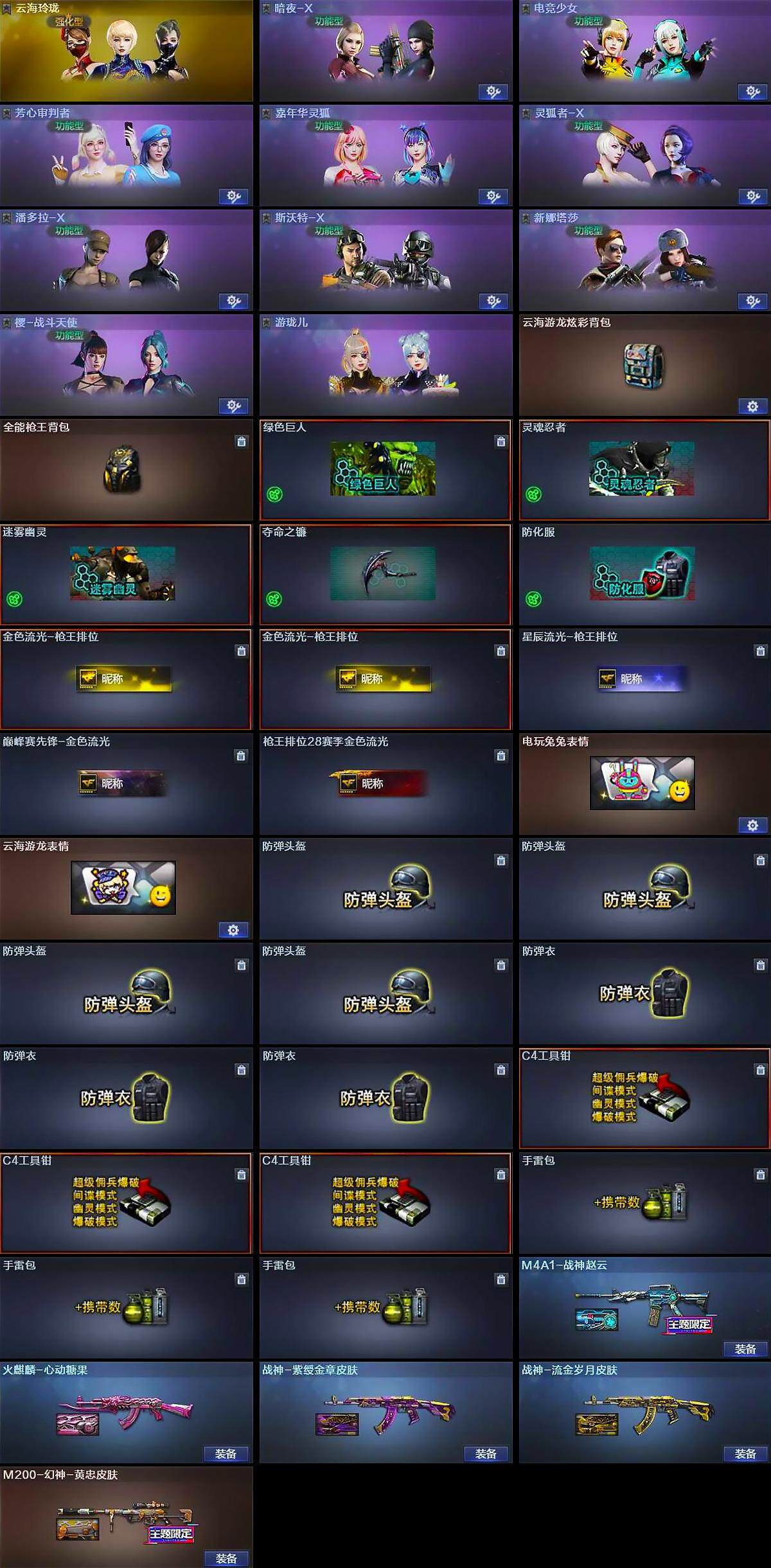 北方大区-25v-6王者-0炫金 【热门武器】:q03-金色蔷薇,m200-幻神,白虎-电玩蓝兔,汤姆逊-烈龙5,斯泰尔-蝴蝶,羊驼玩偶,沙鹰-修罗2 【王者炫金武器】:王者青龙,王者龙血 【皮肤】:m200-幻神-黄忠皮肤,m4a1-战神赵云,火麒麟-心动糖果,战神-紫绶金章皮肤,战神-流金岁月皮肤,ak47-b-常胜将军-曹操,ak47-b-常胜将军-孙权 【角色】:云海玲珑,暗夜