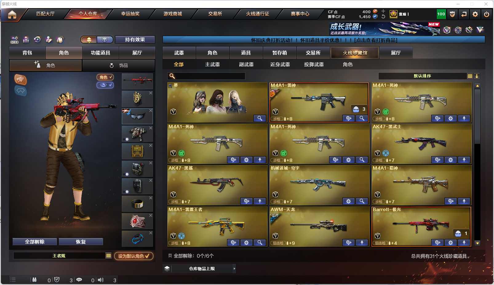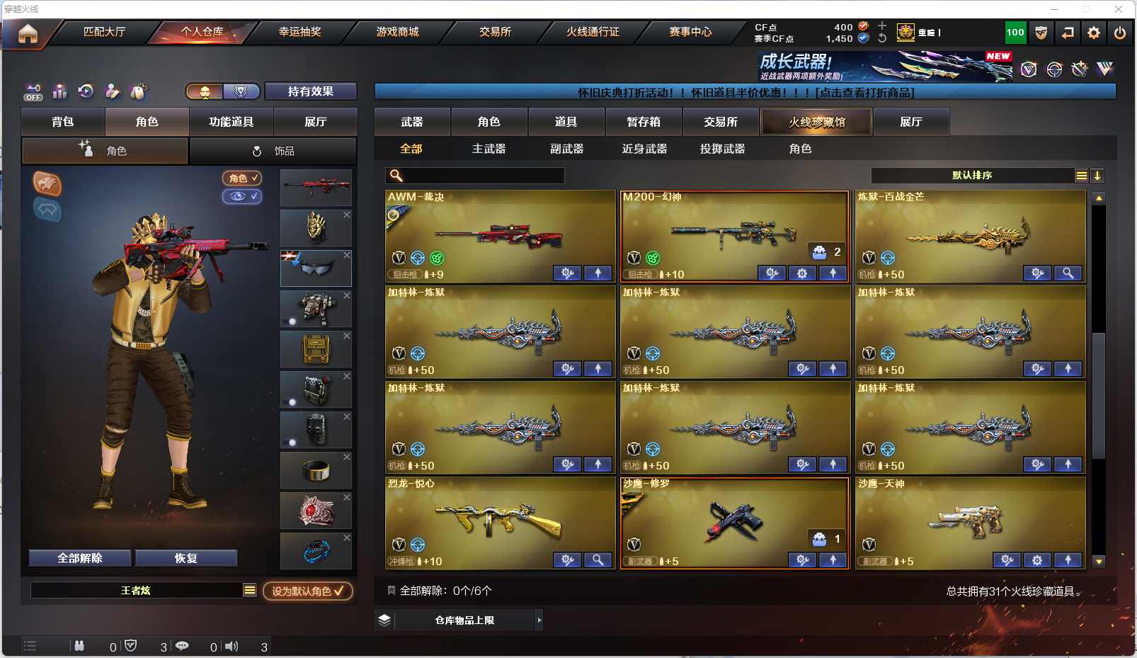 017-w4988-湖北一区-(可二次-VIP2)-31V-【幻神】-【王者炫4防-葵】-【6炼狱】-雷神(暗月)-M4雷霆王者-死神-黑武士-黑鲨-猎神-裁决(运输船)-极光-毁灭(墨兰)-沙鹰修罗(百战金芒)-沙鹰天神-屠龙-麒麟刺-麒麟刺百战金芒-雷霆王者手雷套